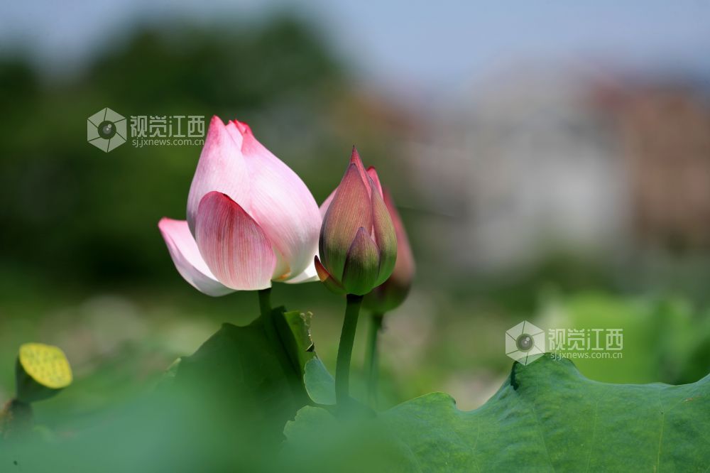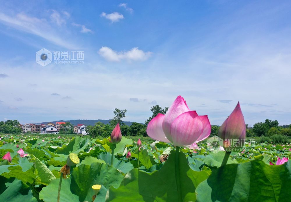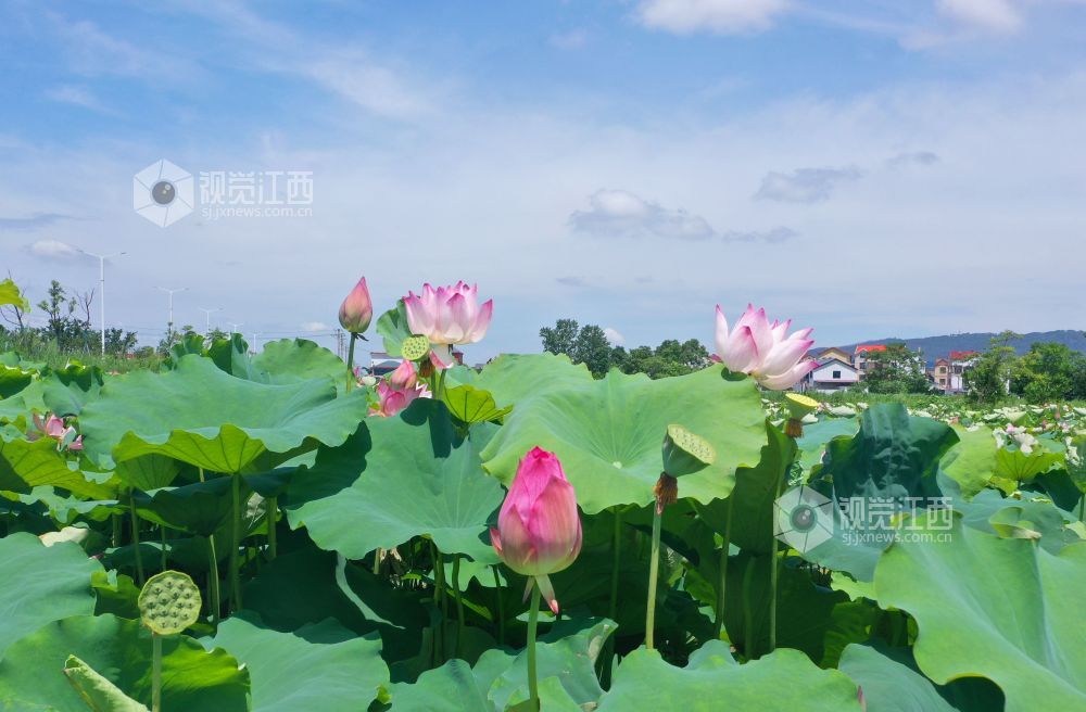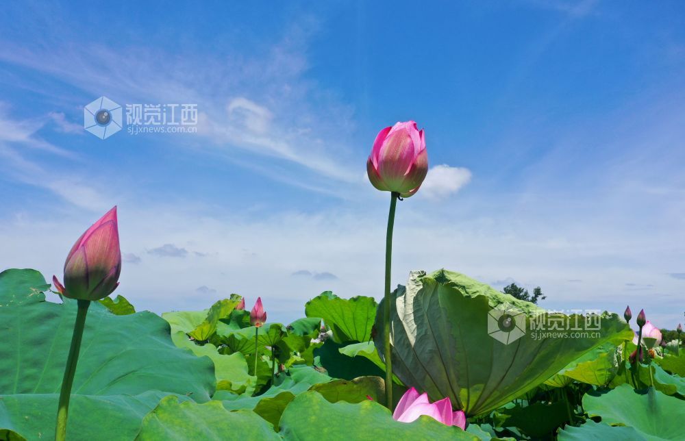 6月19日,夏至将至,在江西省吉安市泰和县澄江镇杏岭村,荷花含苞欲放,美不胜收。