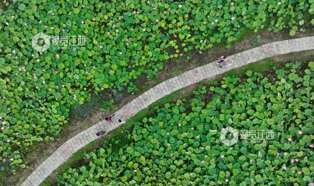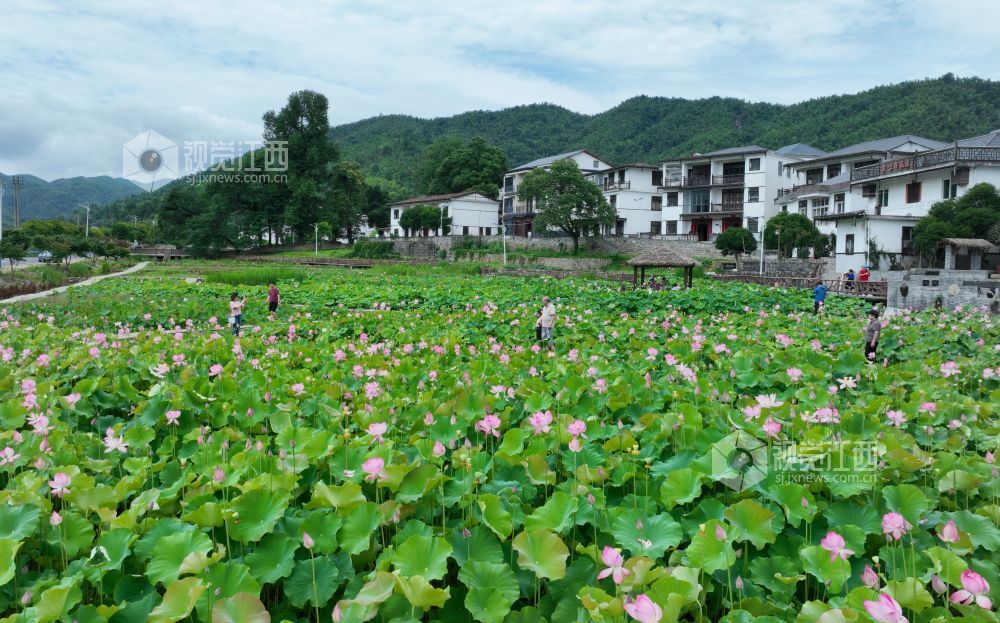 近日,江西省南昌市湾里管理局太平镇,大片的荷花悄然绽放,又迎来了一年赏荷好时节。市民游客在溪边戏水,在塘前赏荷,消暑纳凉,享受夏日美好时光。