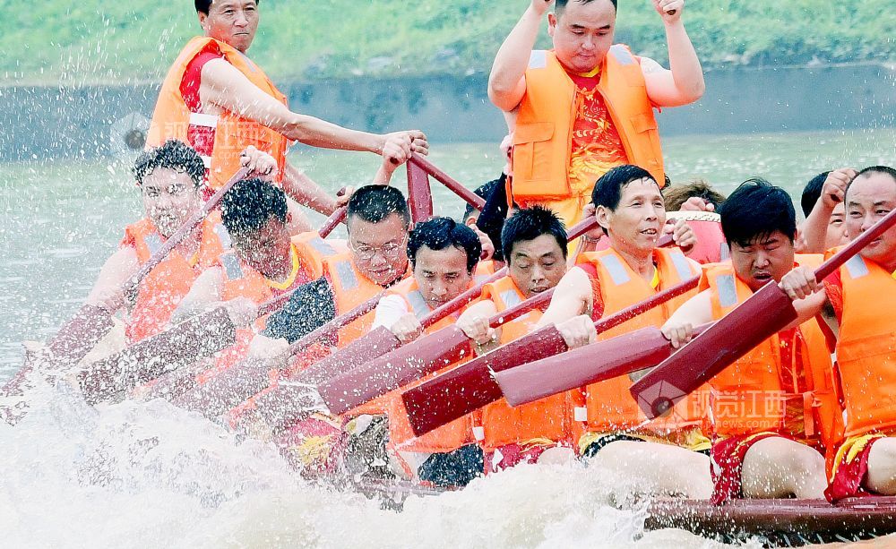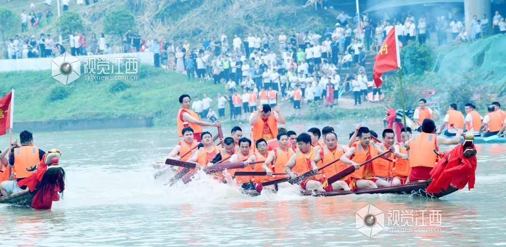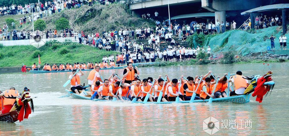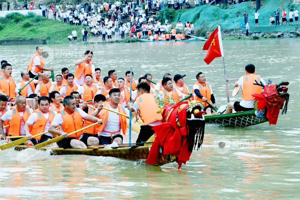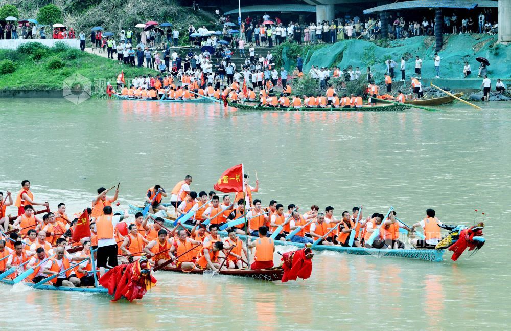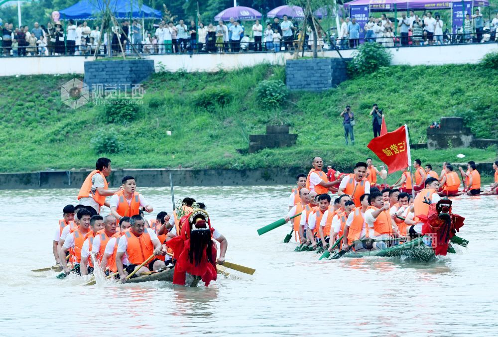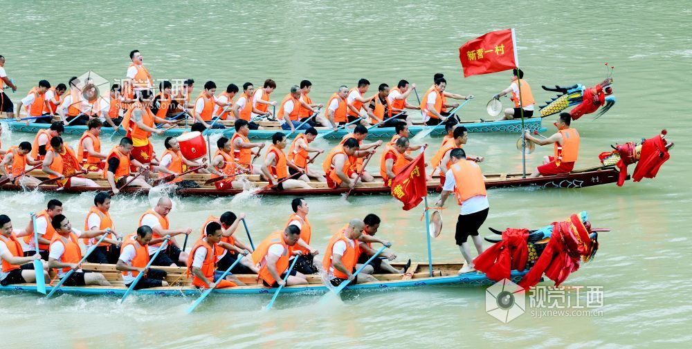 当天是我国传统的端午佳节,江西省德兴市新营街道三个村自发联合组织了一次赛龙舟比赛活动,来自新营三个村的10支龙舟赛参赛队伍,伴随着富有节奏的鼓点,以整齐划一的动作,在赛场中飞驰竞渡。
