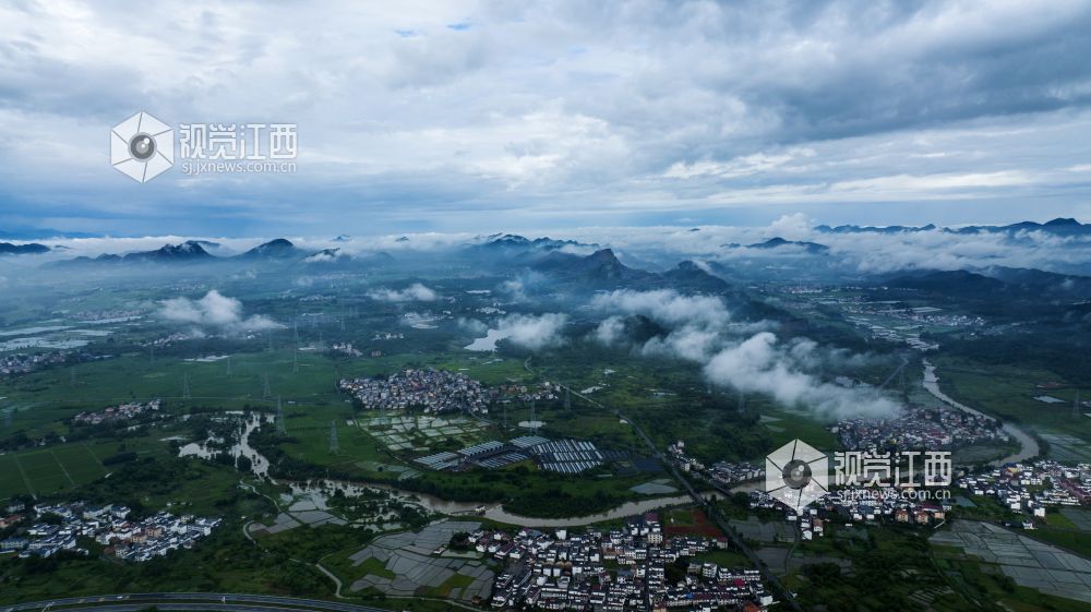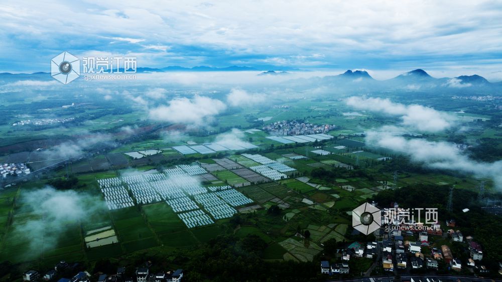 江西新余:雨后云雾缭绕 田园绿意盎然