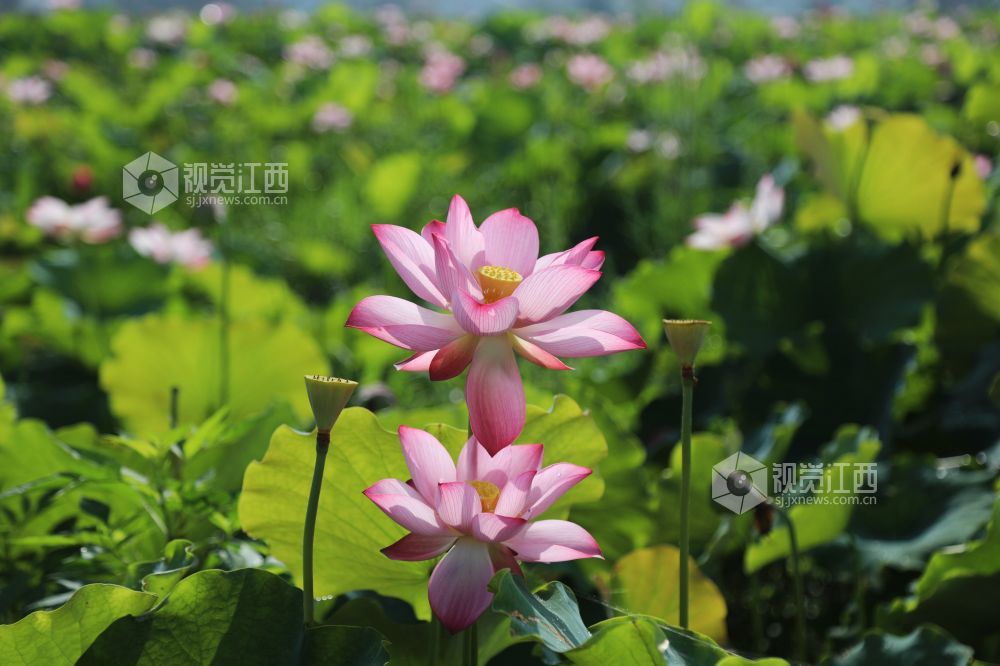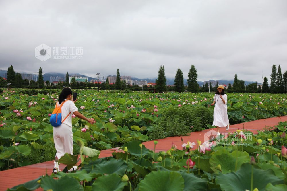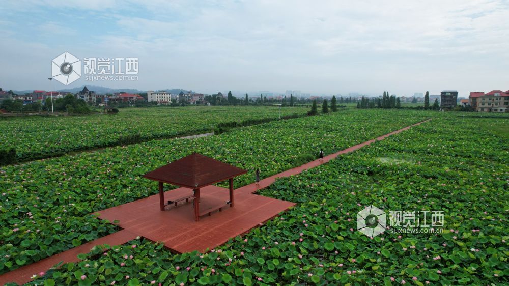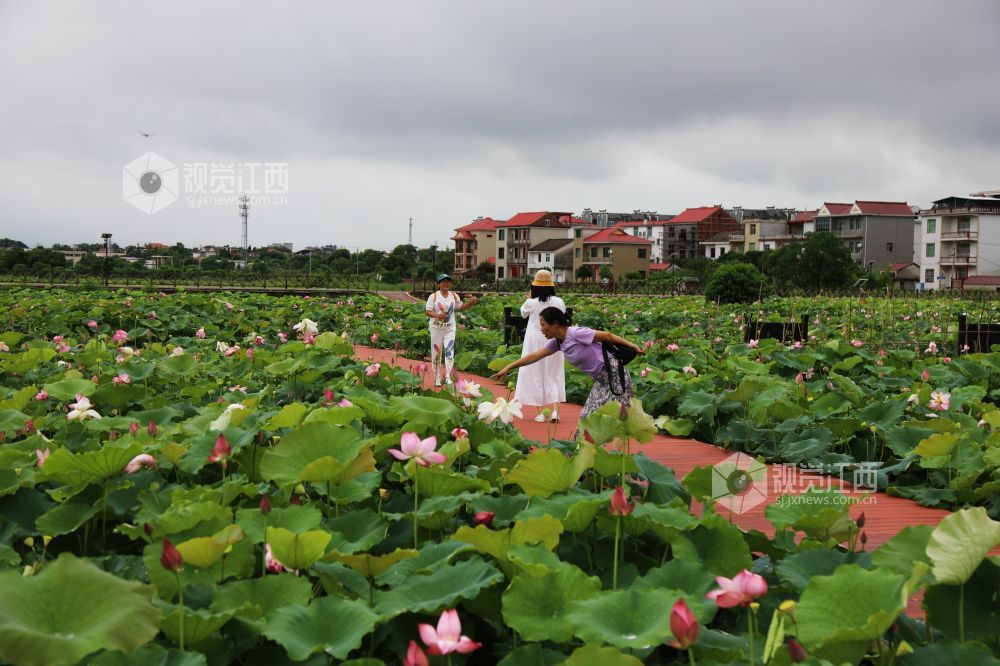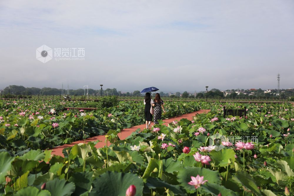 6月27日,江西省莲花县琴亭镇莲花村荷花博览园,一朵朵美丽的荷花迎风绽放,荷香四溢。