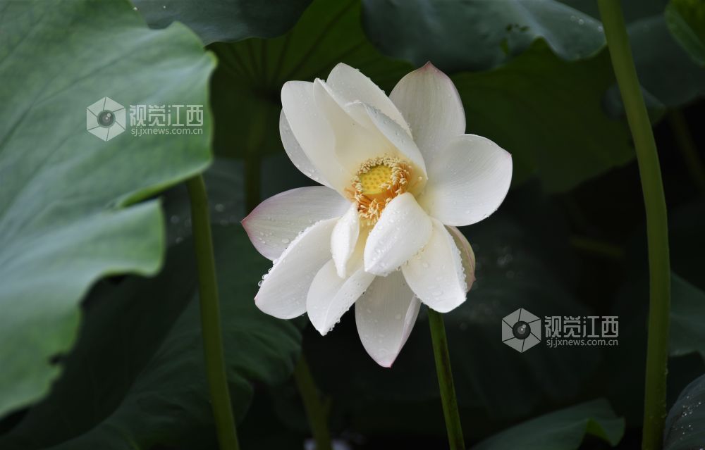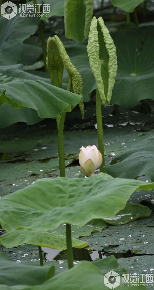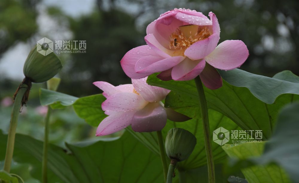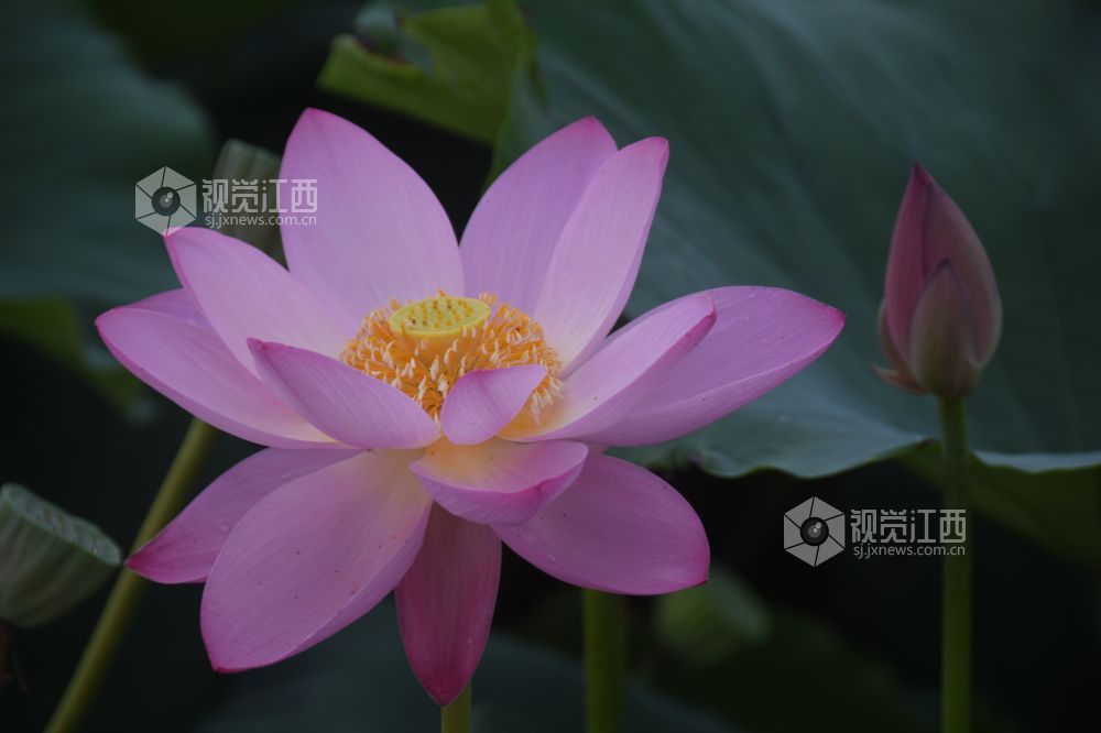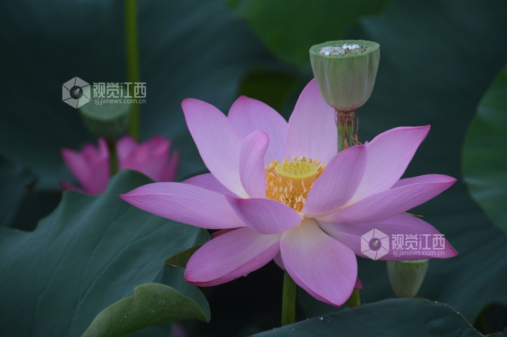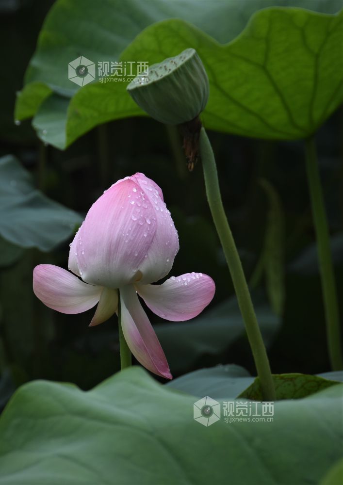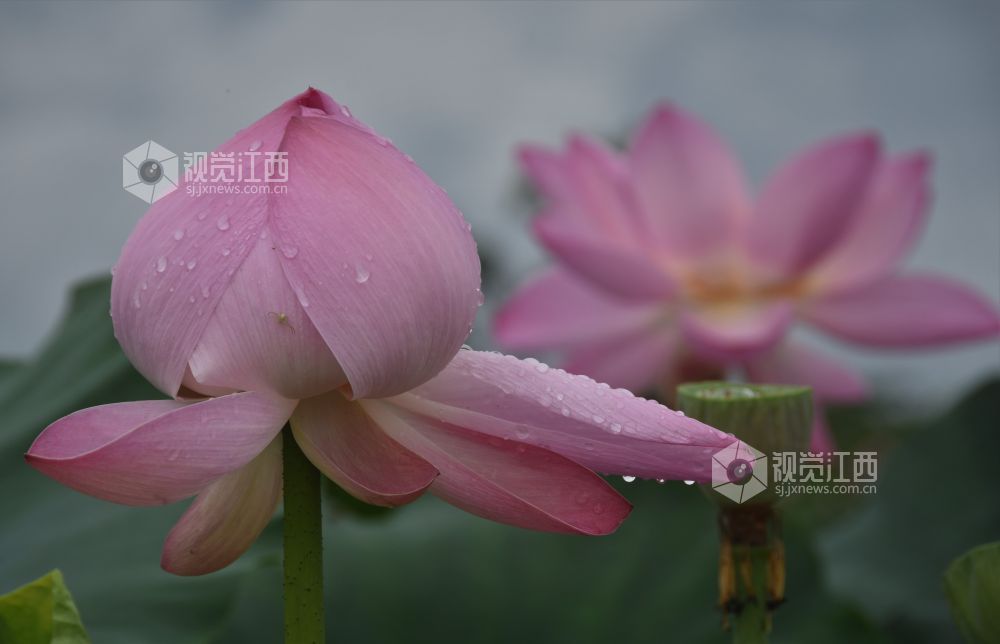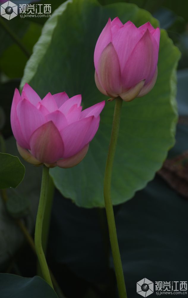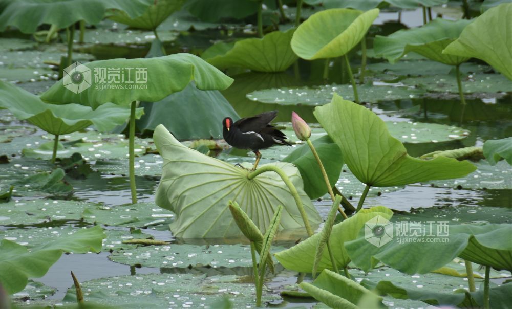 2023年6月27日,江西省鄱阳县西湖荷塘里的荷花千姿百态,叶绿花红,格外艳丽。