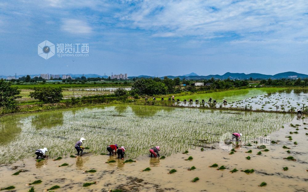 夏日时节,瑞昌市农民抢抓农时栽插中稻,到处一派夏种忙碌景象。