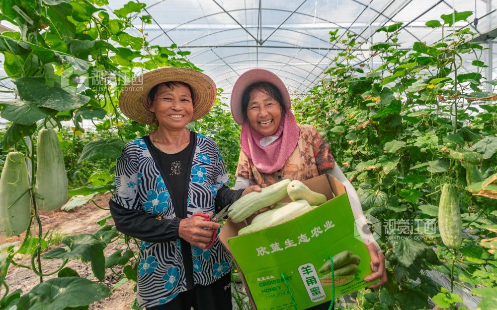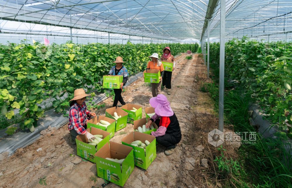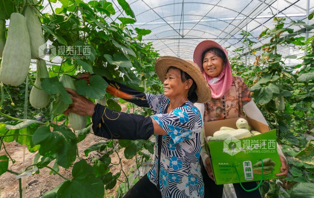 缤纷夏日,瓜果飘香。7月5日,在江西省永新县芦溪乡欣蓝农业种植基地,香甜酥脆的羊角蜜挂满了枝头,农户们正忙着采摘、搬运、装箱,现场一派丰收繁忙的劳动景象。