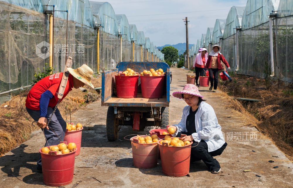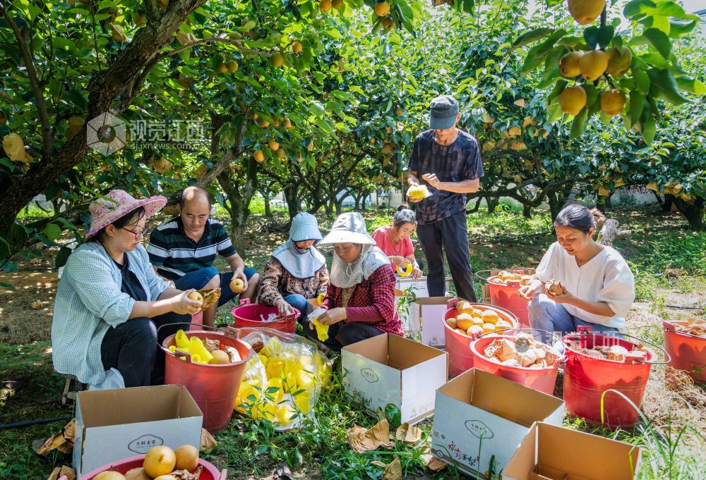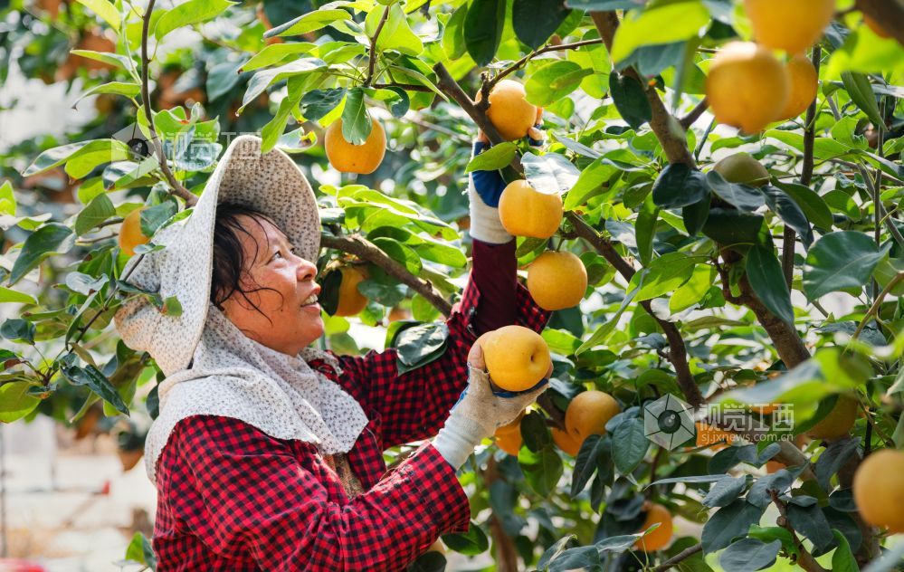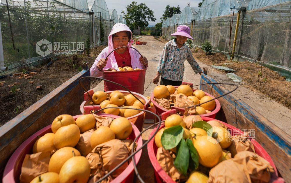 7月11日,江西省永新县象形乡黎江村贝加尔河生态农业基地的翠冠梨迎来丰收,农户们抢抓农时加紧采摘,供应市场。