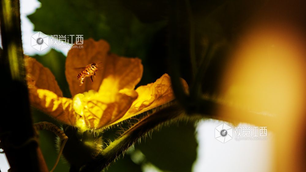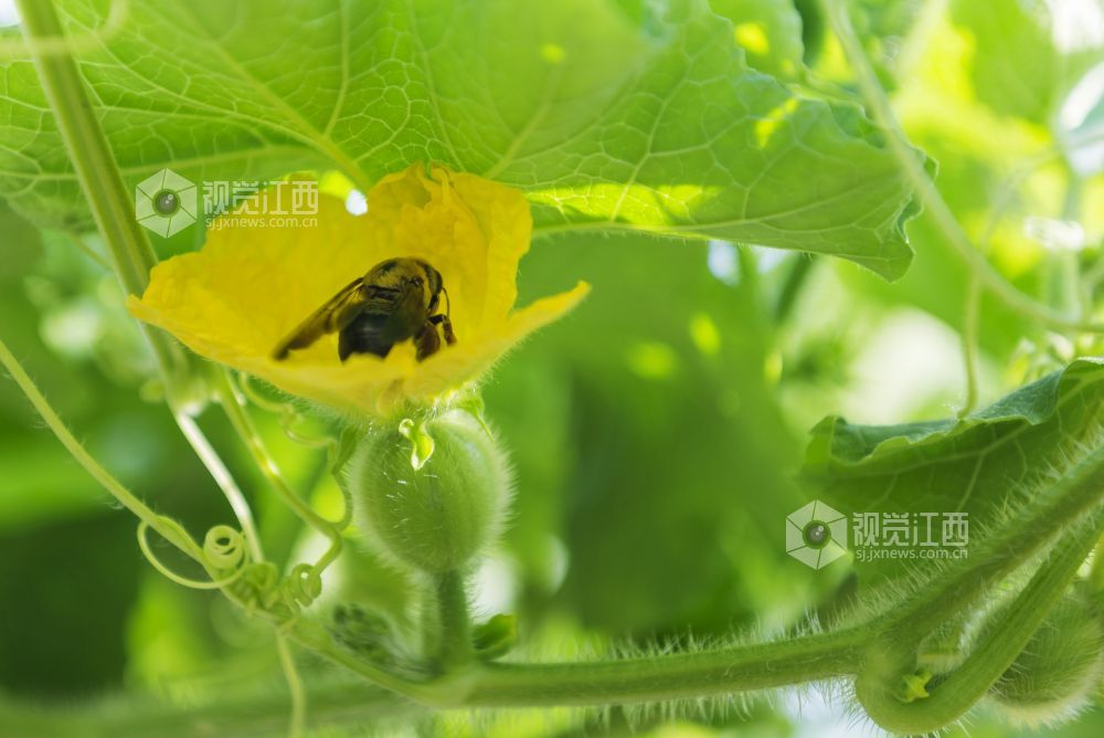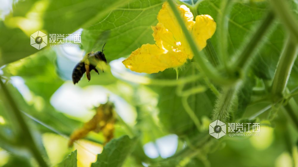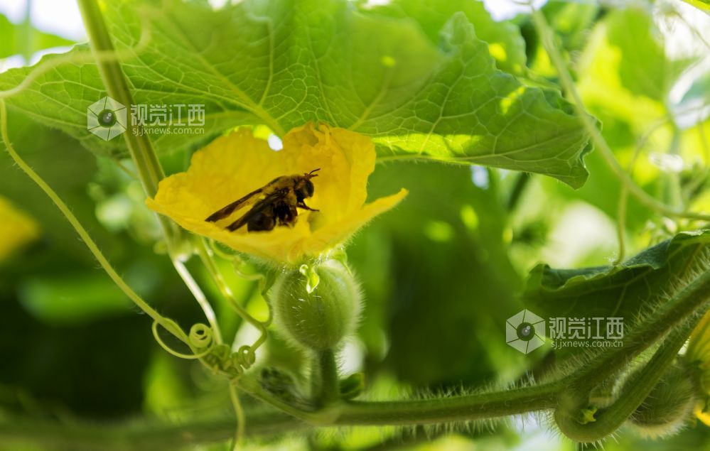 7月13日清晨,在江西省新余市仙女湖区仰头岗办事处孝头村的蔬菜采摘地里,花果飘香,蜜蜂飞舞,成为一道美丽动人的风景。