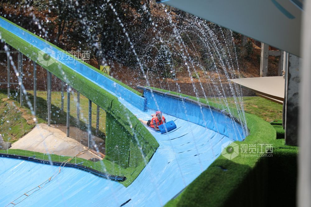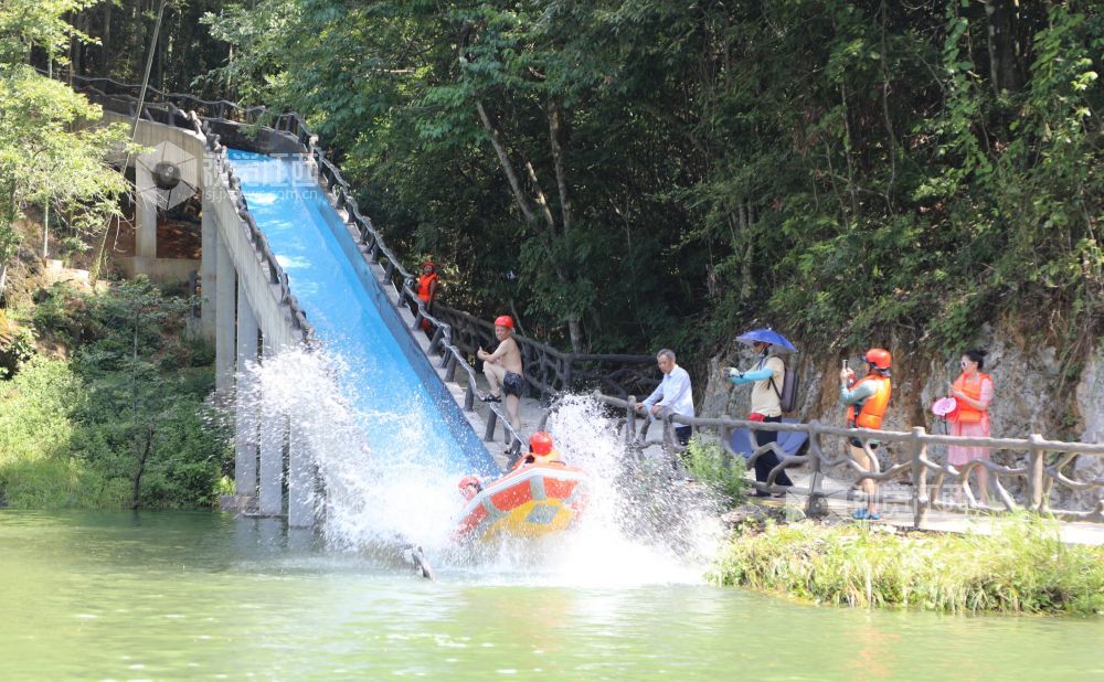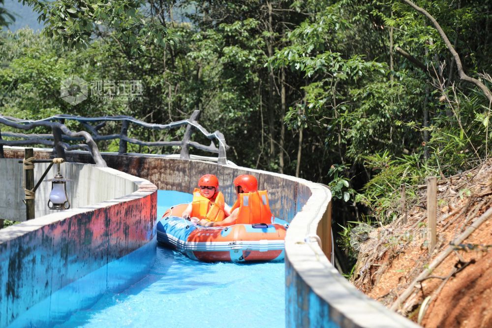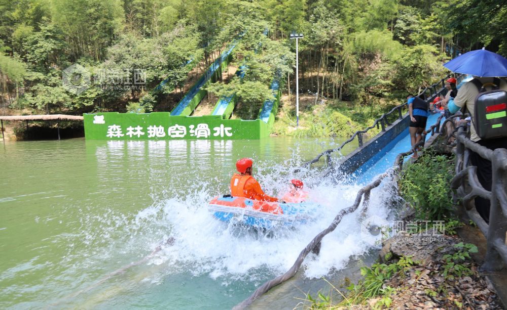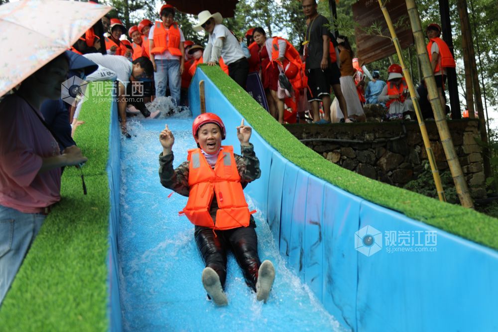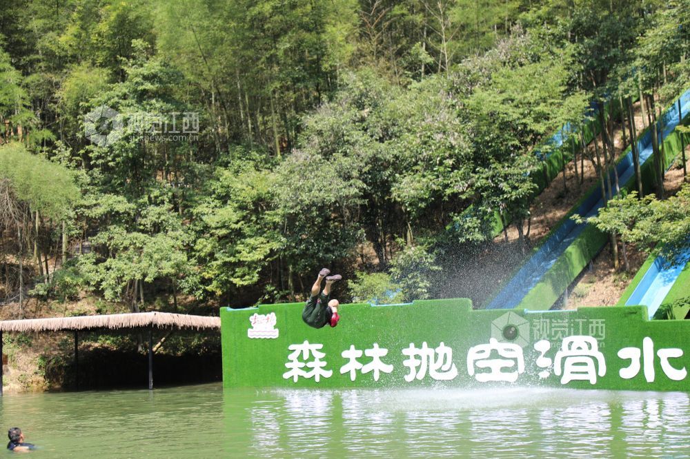 7月13日,江西省莲花县六市乡垭坞村森林滑水景区,市民在游玩,森林抛空滑水、森林高空漂流、森林山地滑水等项目让市民在愉快刺激的运动中享受清凉。