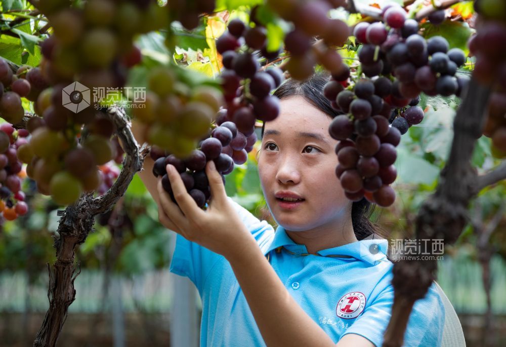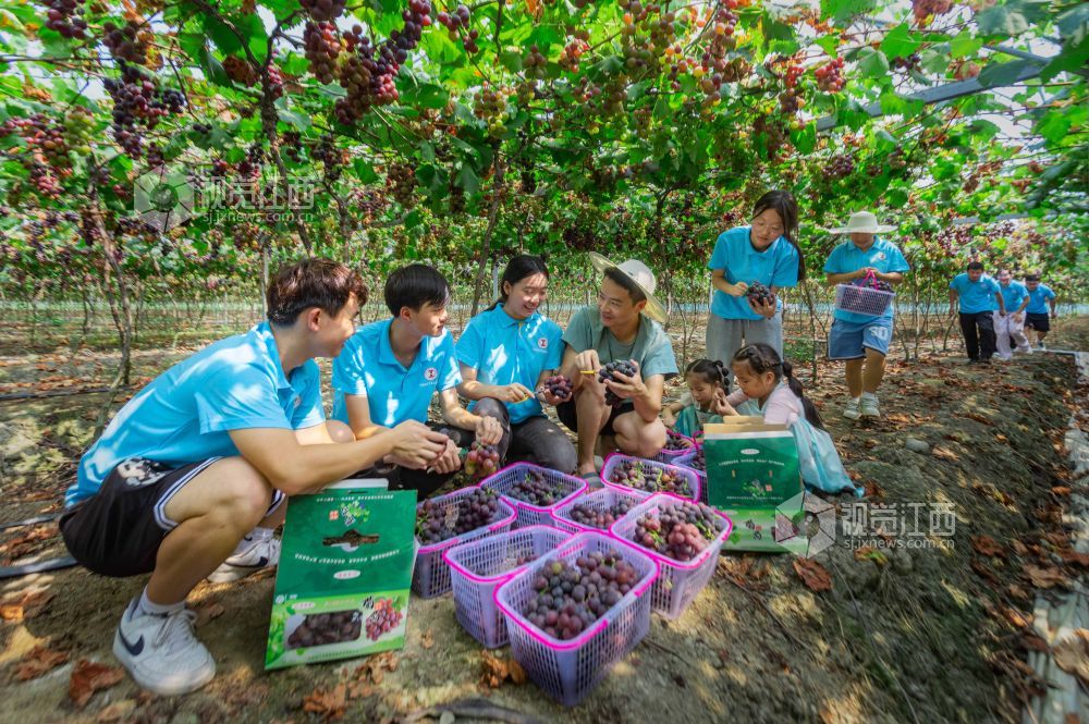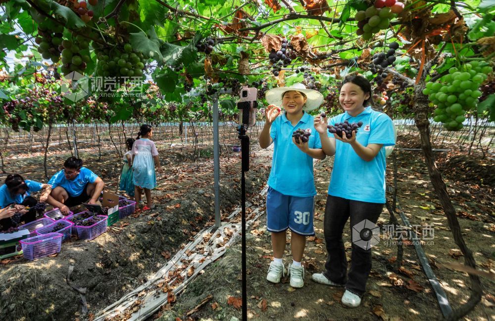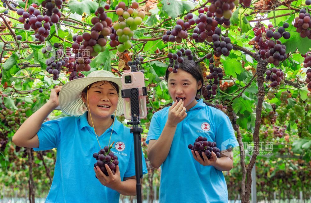 眼下正是梨、葡萄、西瓜等瓜果采收的季节。7月15日,在江西省永新县团委的组织下,江西应用工程职业学院“三下乡”志愿服务队的大学生来到龙源口镇墩上村葡萄种植基地,帮助农户采收葡萄,并进行直播带货推销,用实际行动助力农民增收。