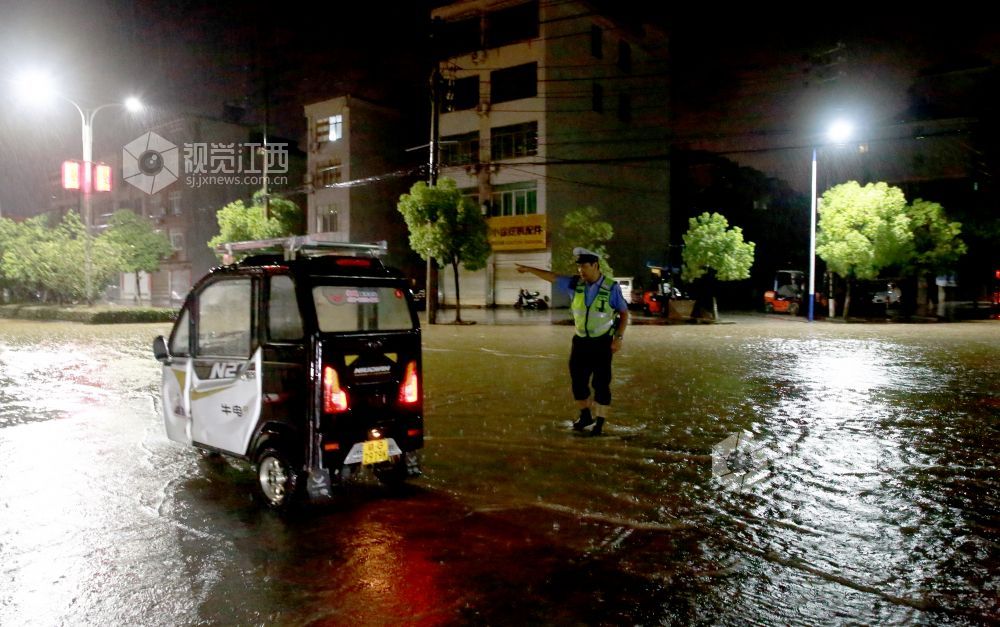 当日,瑞昌市出现强降水天气,当日全市平均降雨量高达53.8毫米,个别乡镇最高降雨量达到125.2毫米,暴雨导致城区部分路段出现积水,为确保暴雨期间道路交通安全畅通,瑞昌市公安局交通管理大队的民警迅速出击,冒雨上路指挥疏导交通。