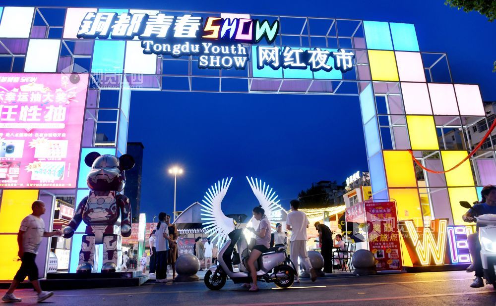 时下正值盛夏,暮色降临、华灯初上,在江西省德兴市铜都青春SHOW网红夜市,各色霓虹灯牌闪烁、烟火缭绕、油炸声嗞嗞作响,热辣滚烫,来自全国各地的几十种地道小吃,让前来消费的食客们垂涎三尺。他们一边感受着山城夜市的繁华,一边把酒言欢、品尝着各种美味佳肴。