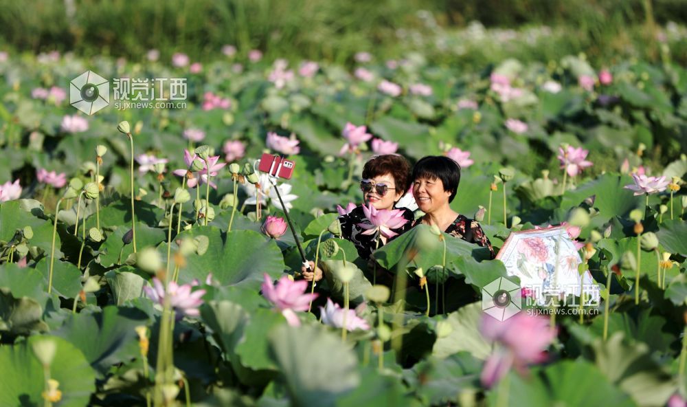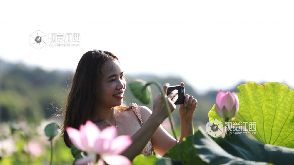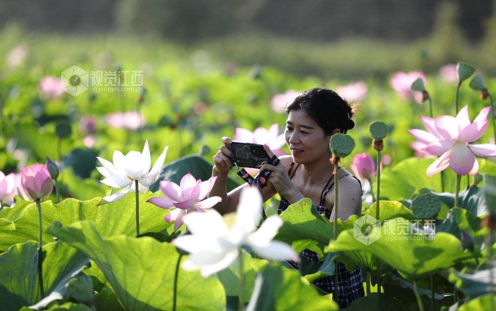 无荷不夏天,我为荷而来。7月22日,江西省分宜县分宜镇大台村荷花盛开,微风过处,荷叶田田,引来众多市民前来游玩赏荷。盛夏时节,分宜县城乡各地荷花相继绽放,朵朵荷花亭亭玉立于碧叶之上,为炎炎夏日增添一丝凉意,市民纷纷前往赏荷、拍照,感受美好生活。
