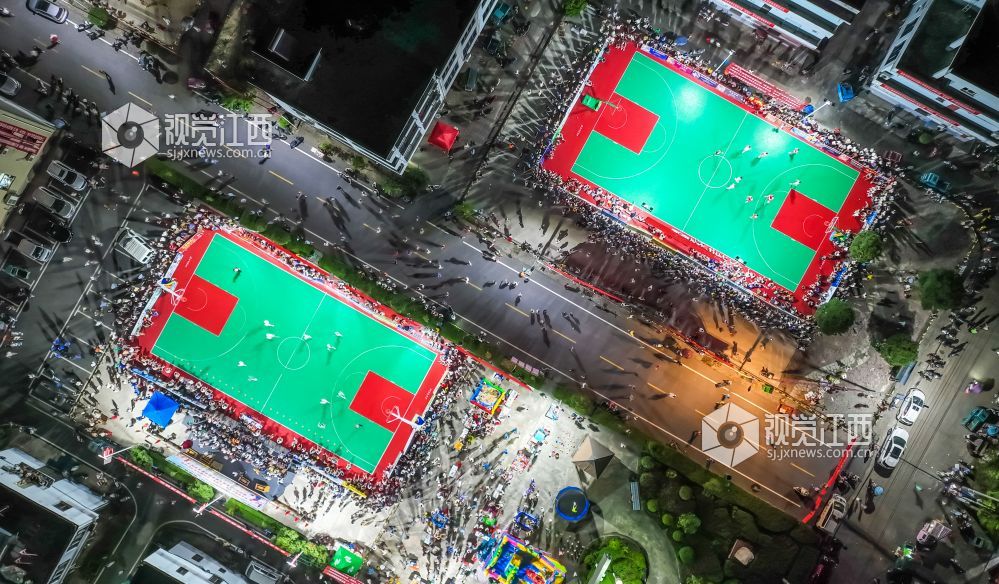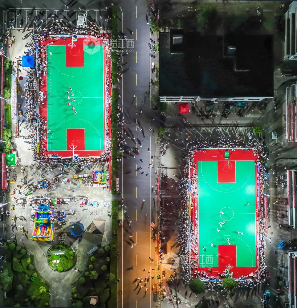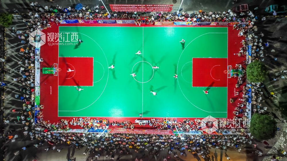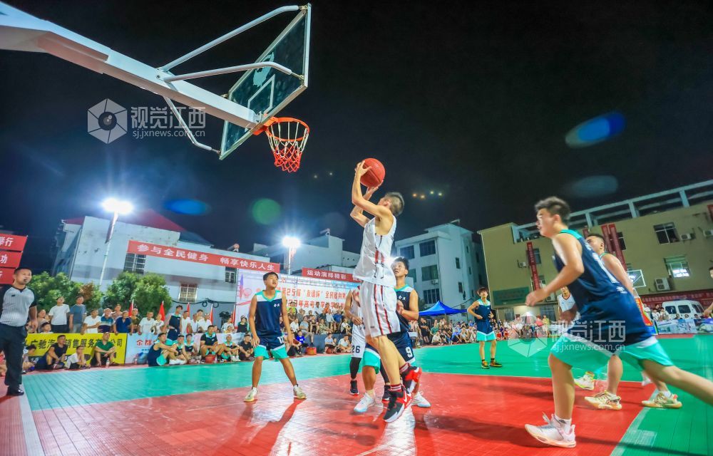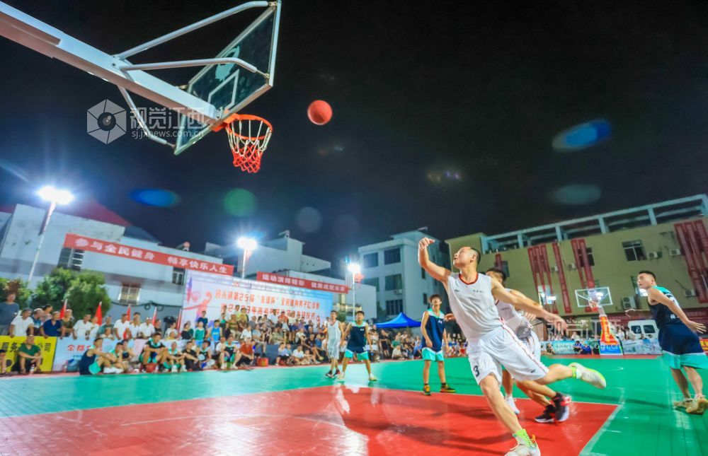 2023年7月24日晚,江西省瑞昌市码头镇,“村BA” 篮球赛火热进行,参赛队展开激烈角逐。