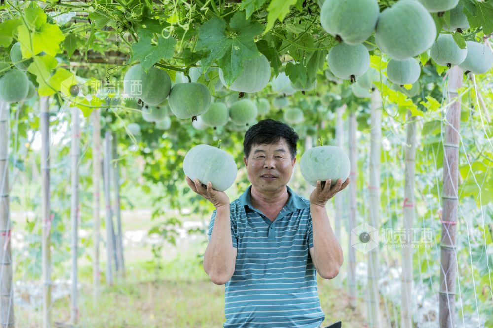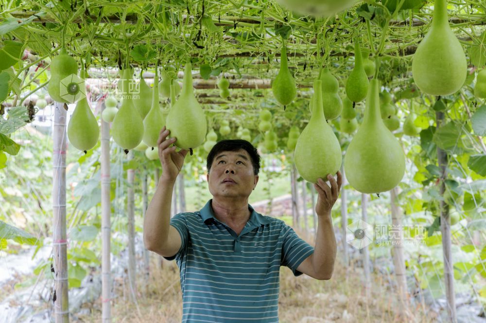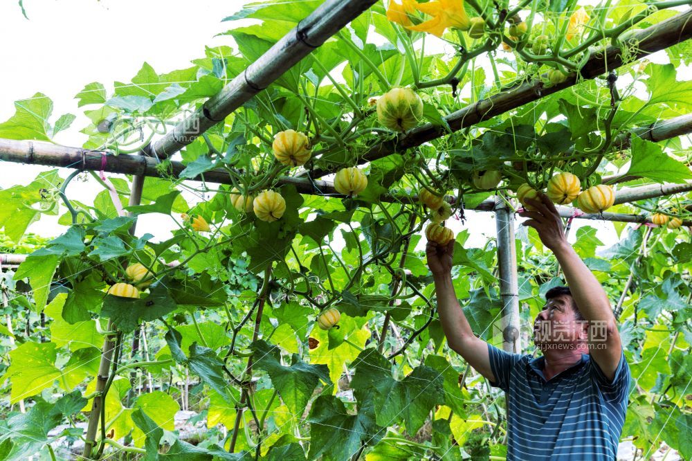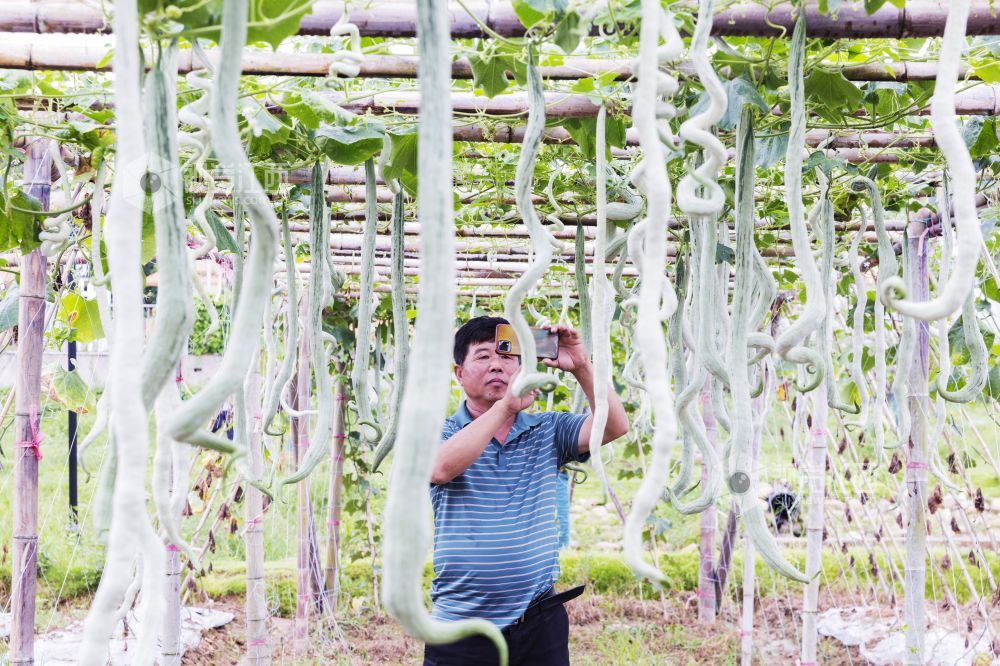 7月29日,江西省新余市仙女湖区仰天岗办事处“蔬菜大王”张润生正在贯背村采摘自己基地种植的蔬菜。该基地今夏蔬菜喜获丰收,目前各种果蔬都挂满了果实,他也即将开展游客实地观赏、采摘的活动,让游客体验菜园里丰收的乐趣。