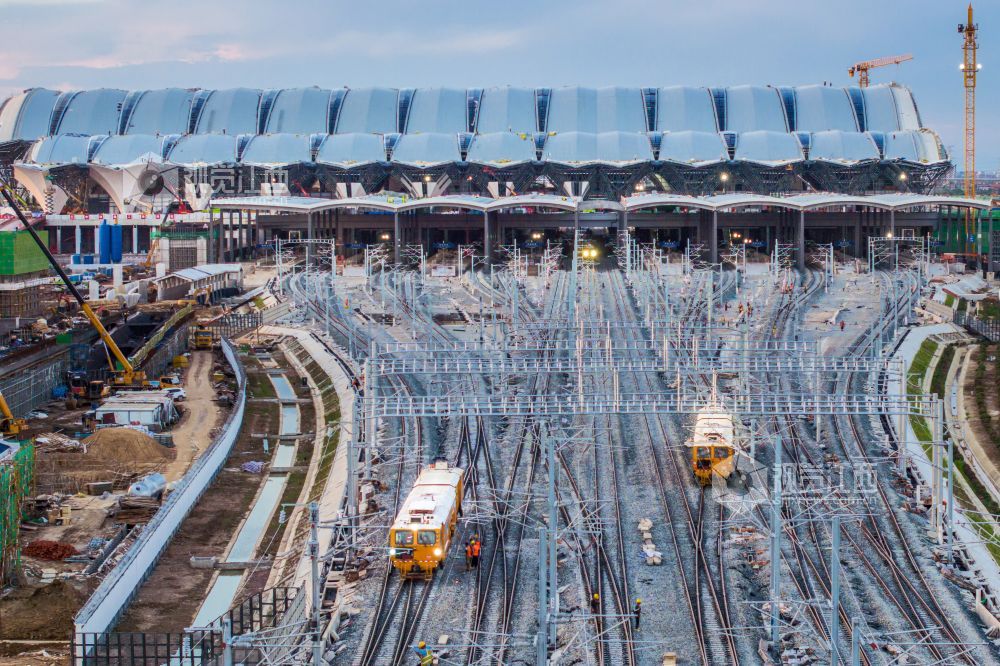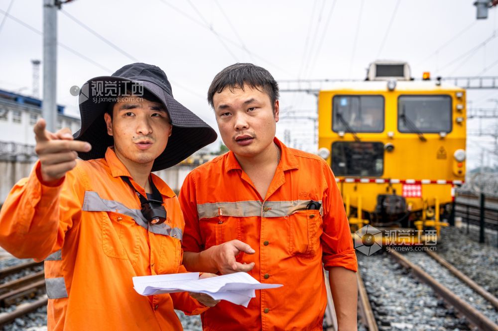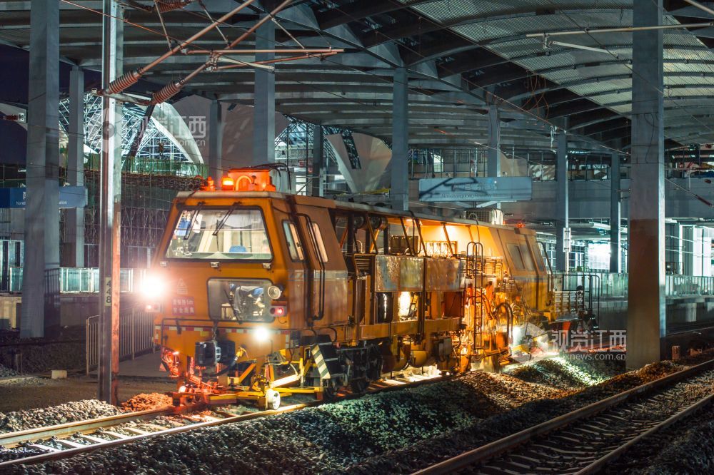 7月31日,南昌东站施工现场一片繁忙景象,工具碰撞的“哐哐”声、机器快速工作的“轰鸣”声交织在一起,中国铁路南昌局集团有限公司鹰潭工务机械段正在对昌景黄高铁进行机械化精调作业。