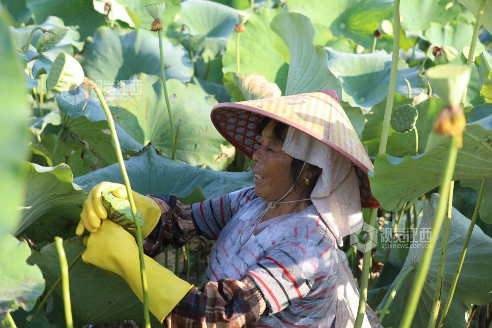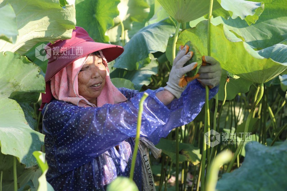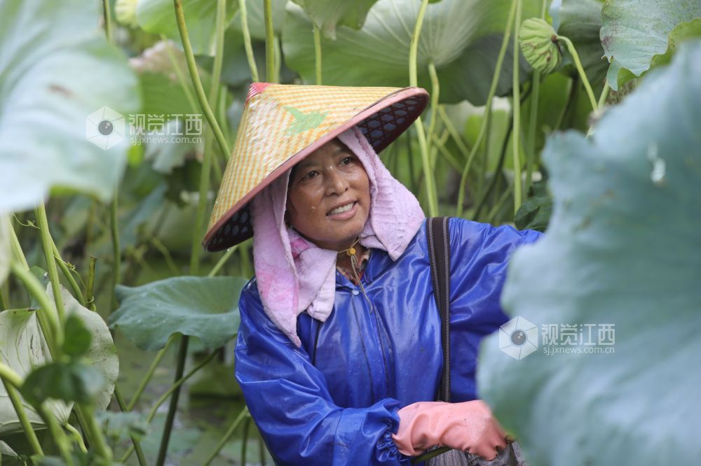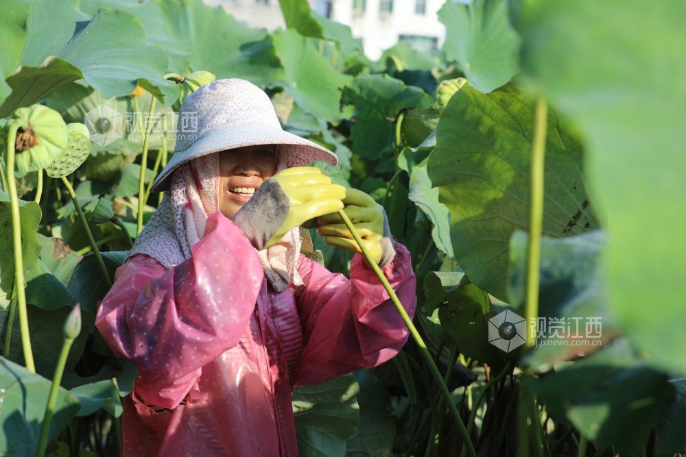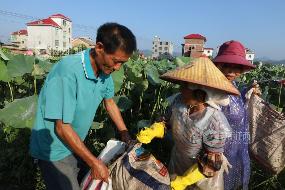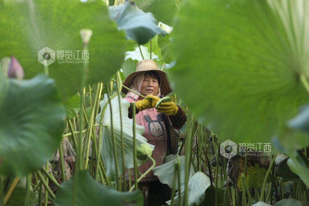 8月4日,在江西省莲花县良坊镇湾溪村,村民正在采收莲蓬。进入八月份,这里的莲子陆续进入成熟期,当地村民抢抓时节进行采摘、加工,到处呈现出丰收的繁忙景象。