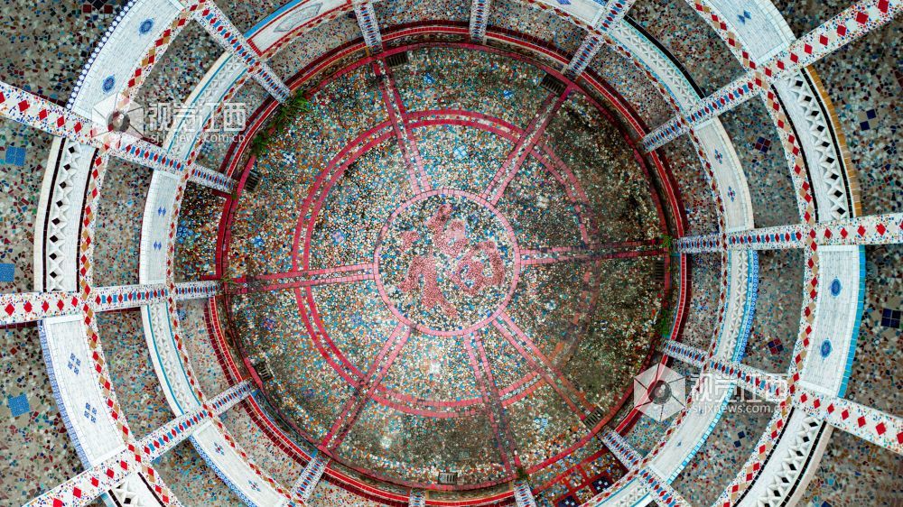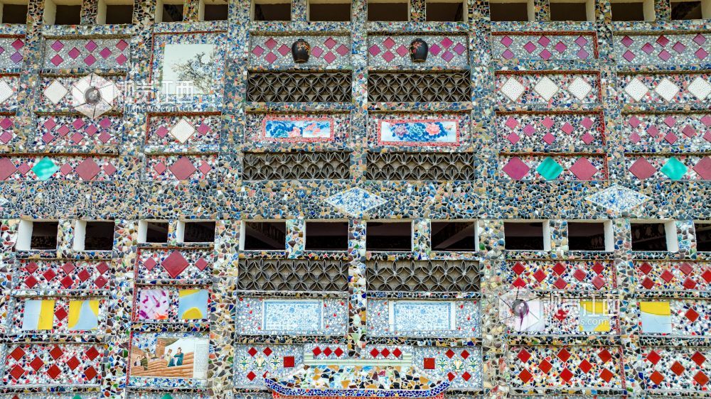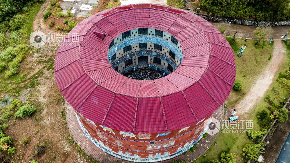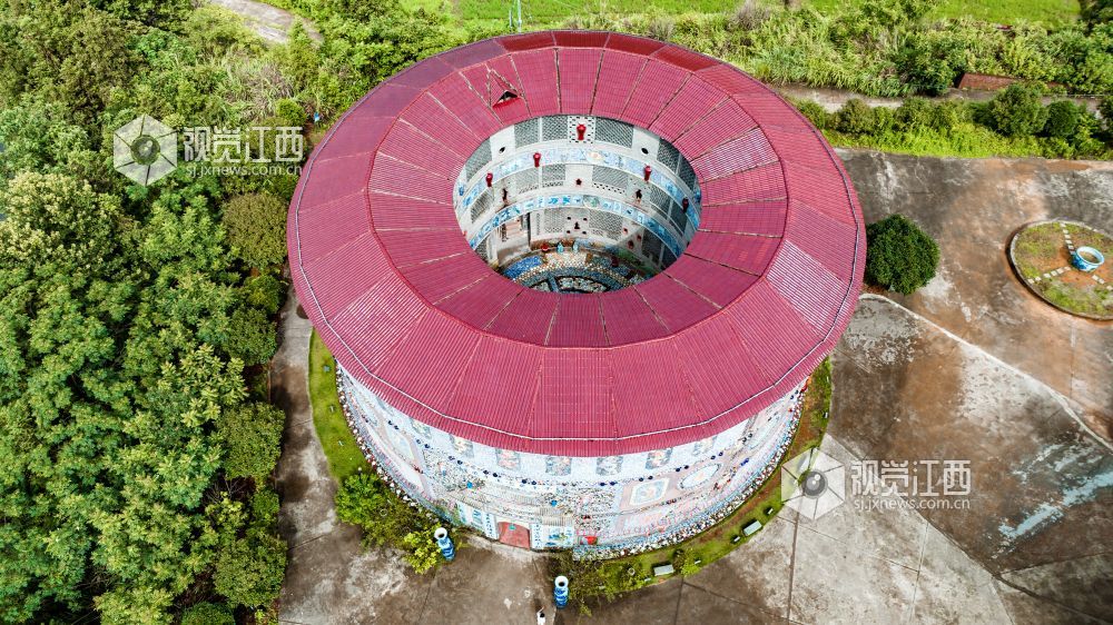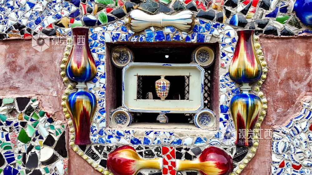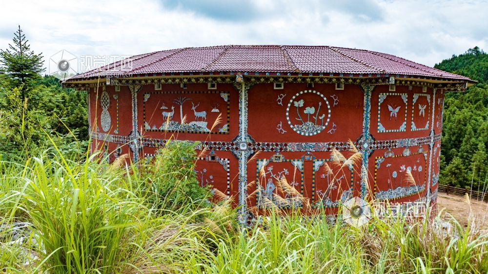 千年瓷宫位于江西省景德镇市浮梁县新平村的新平公路旁,其外形像一个色彩斑斓的巨大圆形“蛋糕”,建筑物内外墙面也像天津的“瓷房子”一样,贴满了瓷片和瓷器,据说整座建筑用了6万多件瓷器和80吨瓷片,来来往往的车辆经过这里,无一不停车驻足观看。