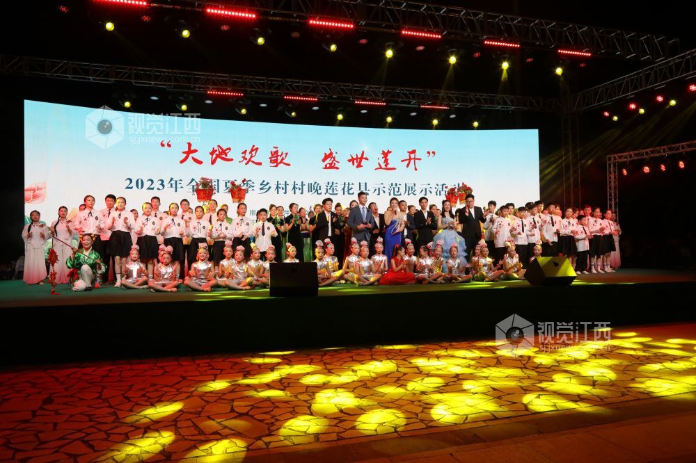 8月7日晚,“大地欢歌 盛世莲开” 2023年全国夏季乡村村晚莲花县示范展示活动在琴亭镇莲花村荷花博览园广场精彩上演。