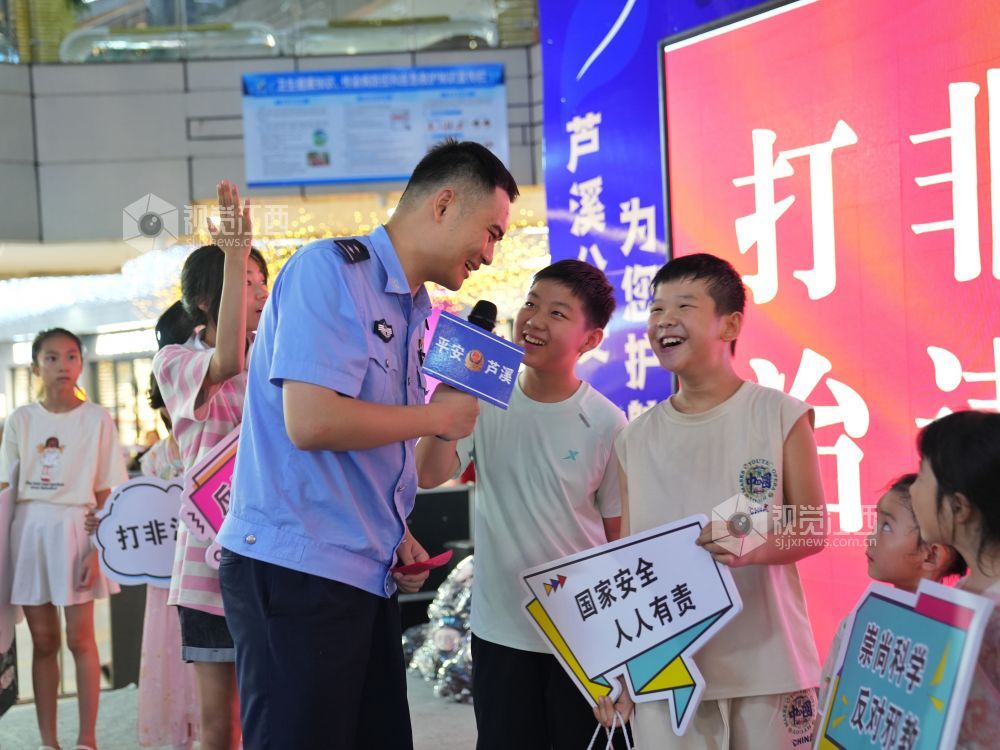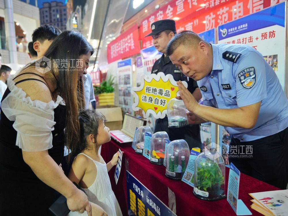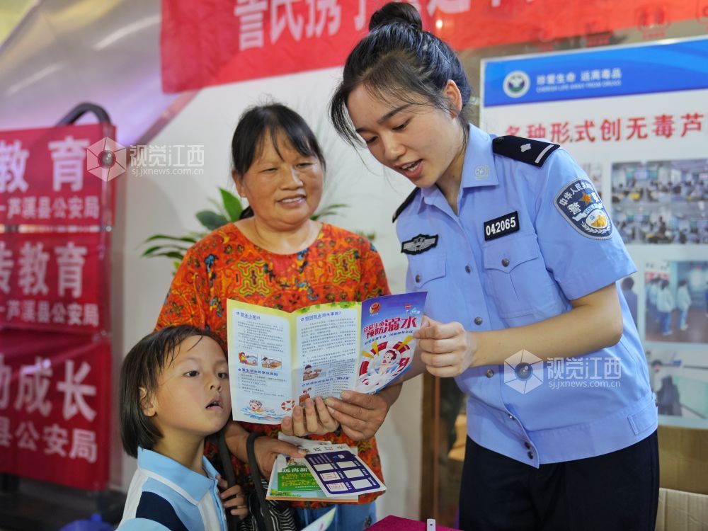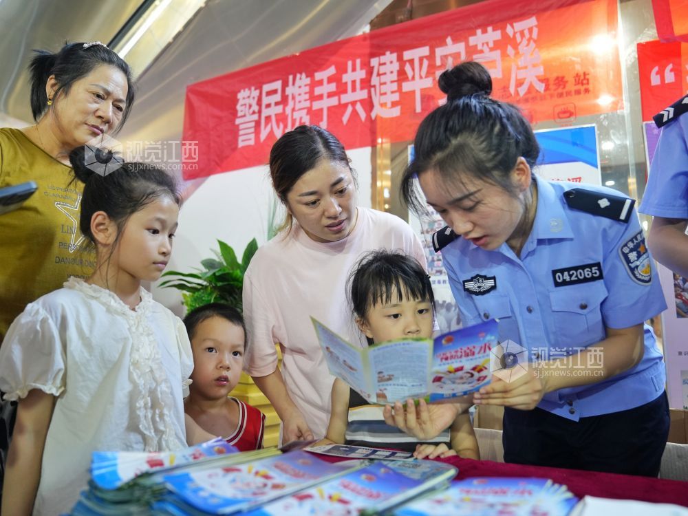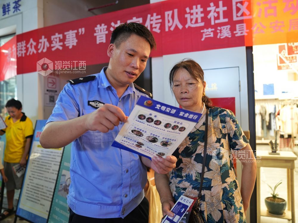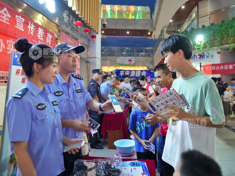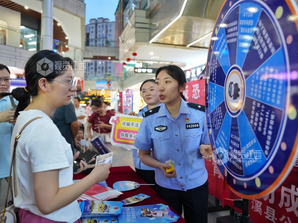 2023年8月11日晚,在江西省萍乡市芦溪县漫时区广场,芦溪县公安局组织民警在辖区夜市开展反电信网络诈骗、禁毒知识、交通道路安全等集中宣传活动,现场民警通过摆“摊位”展示仿真毒品模具、讲解反诈知识、有奖答题等方式宣传安全防范知识,切实提高市民安全防范能力。