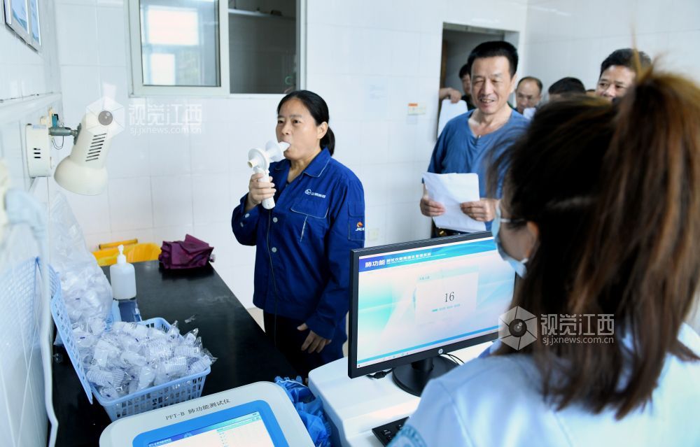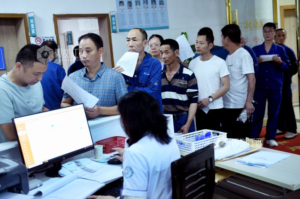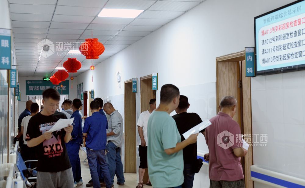 2023年8月16日,群众争相来到江西省德兴市第二人民医院“一站式”服务体检中心排队参与健康检查。