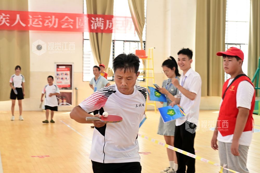 2023年8月18日,江西省宜春市万载县第二届残疾人运动会在该县第二中学体育中心举行,来自全县18支代表队的200余名选手分别参加了短跑、立定跳远、乒乓球、羽毛球、象棋、举手托乒乓球接力等六项竞赛。