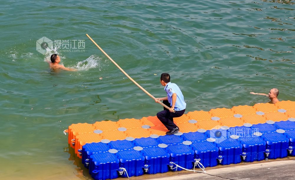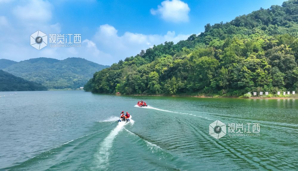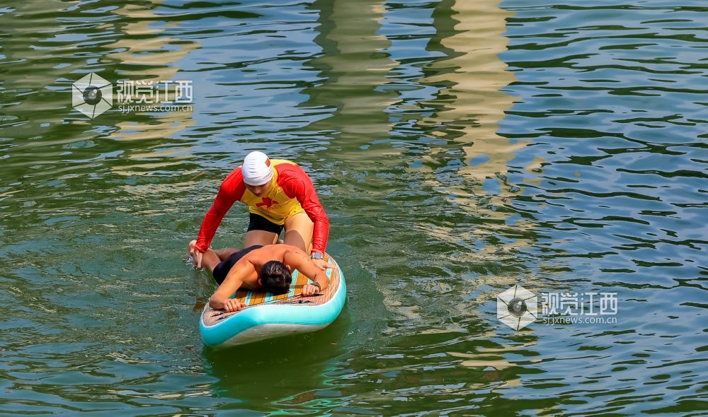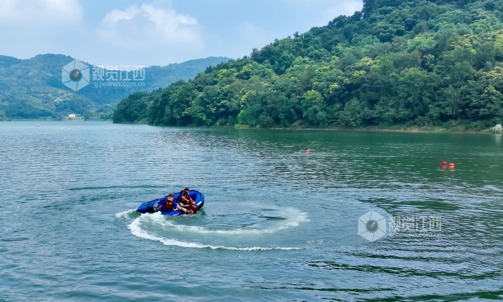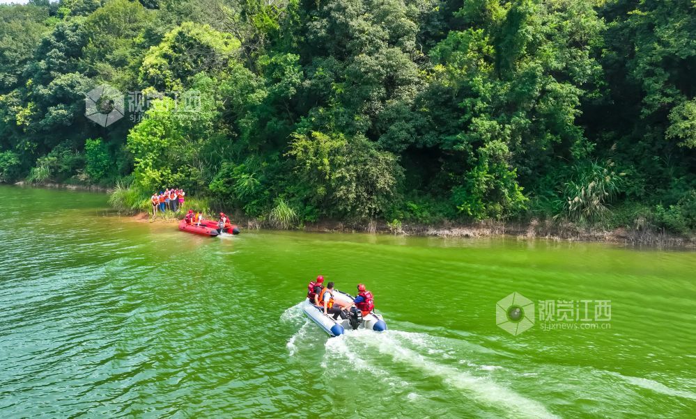 2023年8月19日,江西省瑞昌市桂林街道辖区内龙源水库,参演人员在水面开展防溺水应急演练。