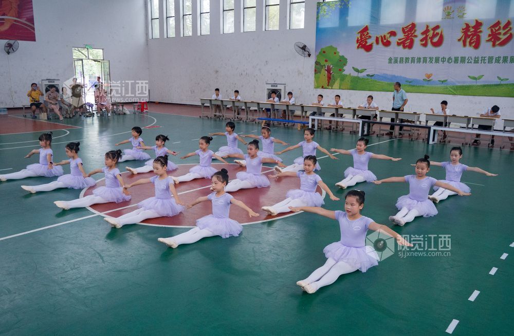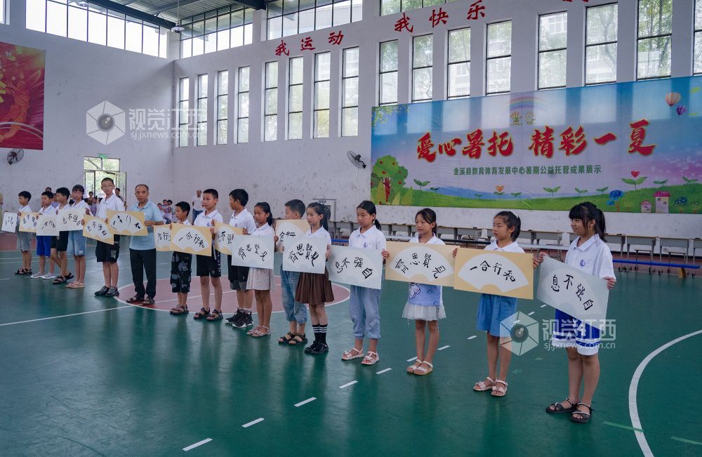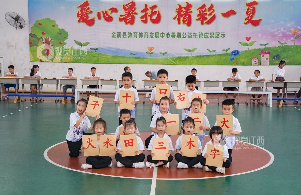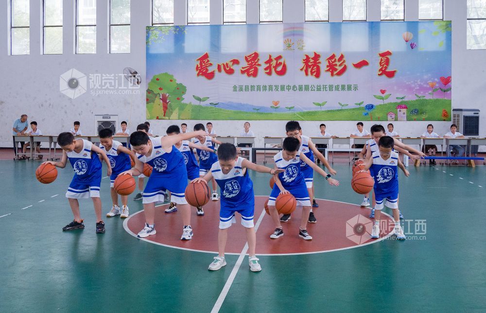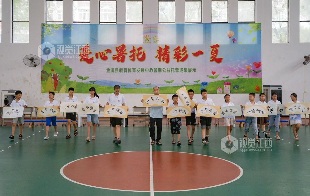 2023年8月19日,金溪县教育体育发展中心在室内篮球场开展以“爱心暑托 精彩一夏”为主题的暑期公益托管成果展示,展现了孩子们多姿多彩的暑期生活和不断成长的进步。