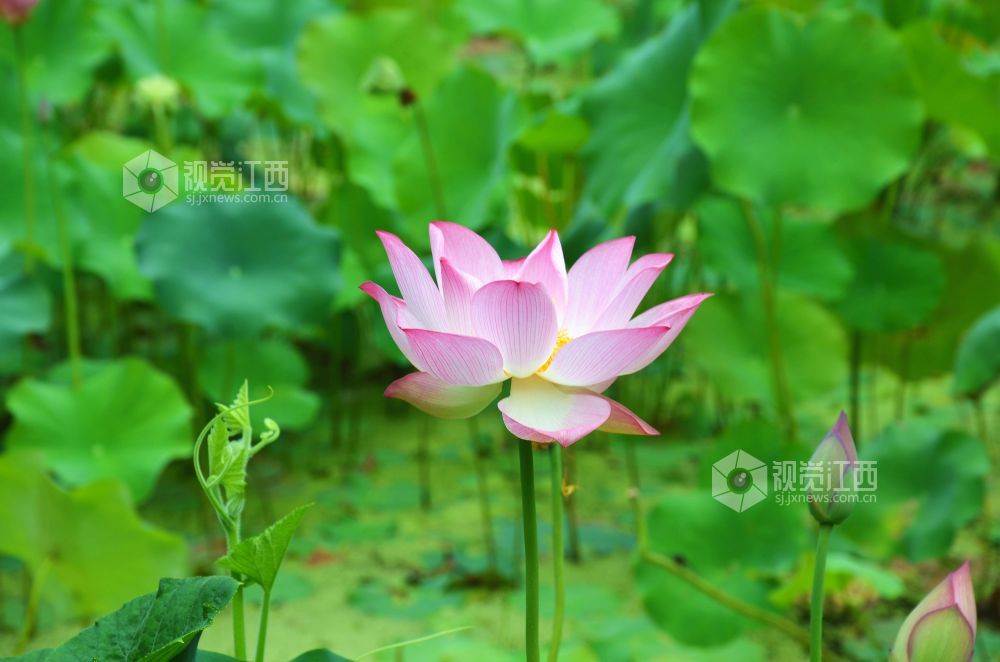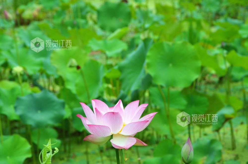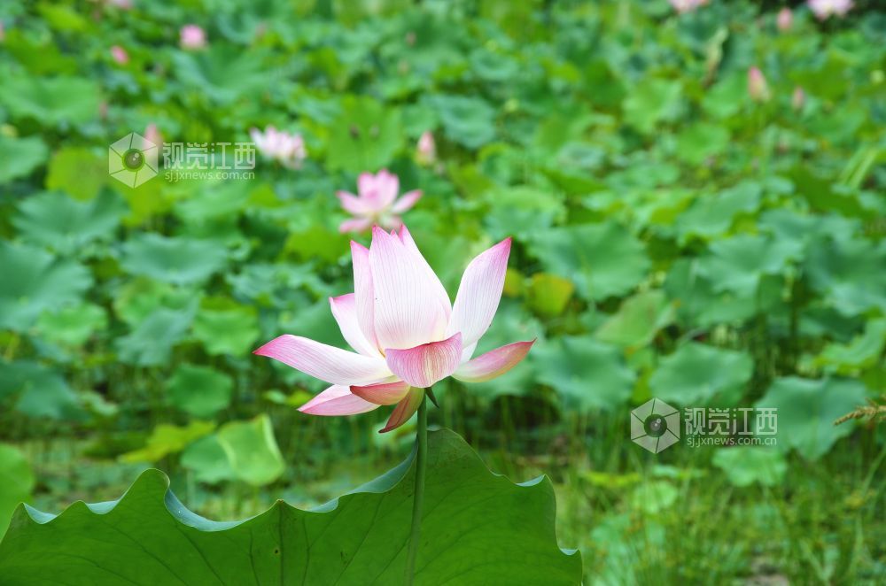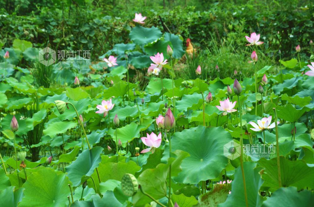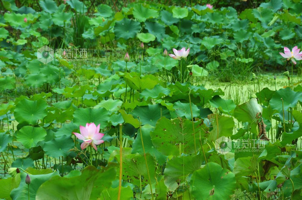初秋时节,江西省永新县三湾乡高车坳畲族村荷塘内的荷花竞相绽放,朵朵荷花在绿叶的映衬下随风轻舞,摇曳生姿,放眼望去,呈现出一幅“接天莲叶无穷碧,映日荷花别样红”的美丽乡村画卷。