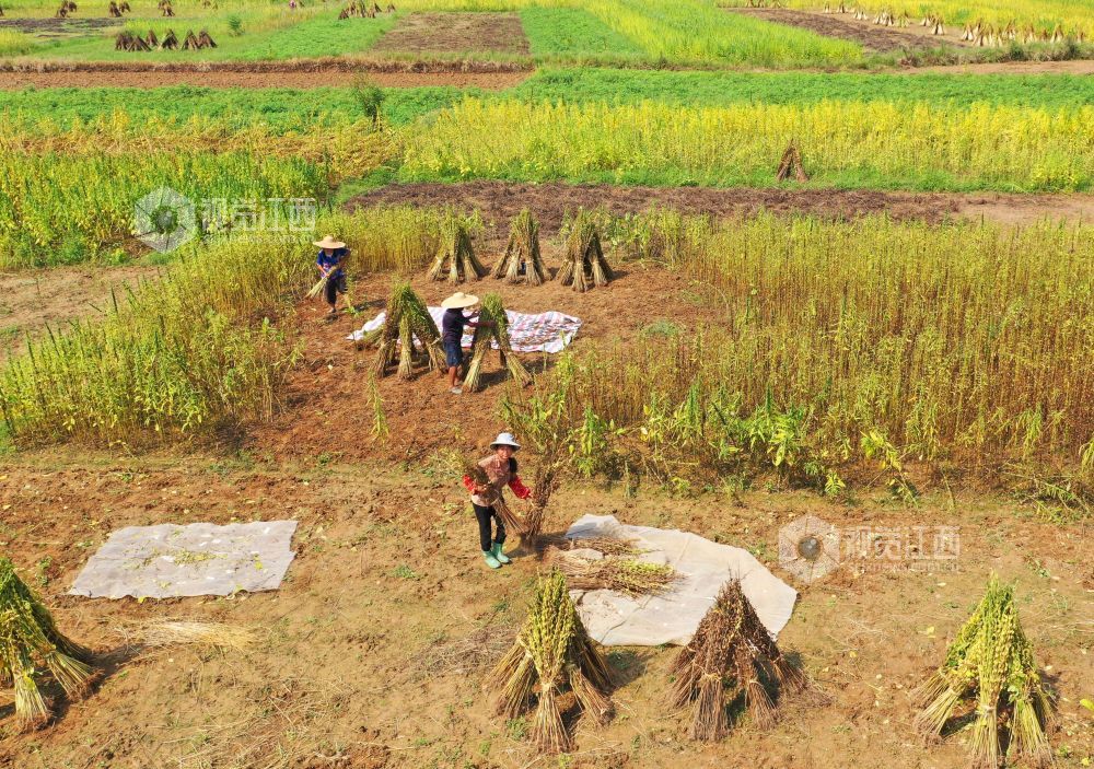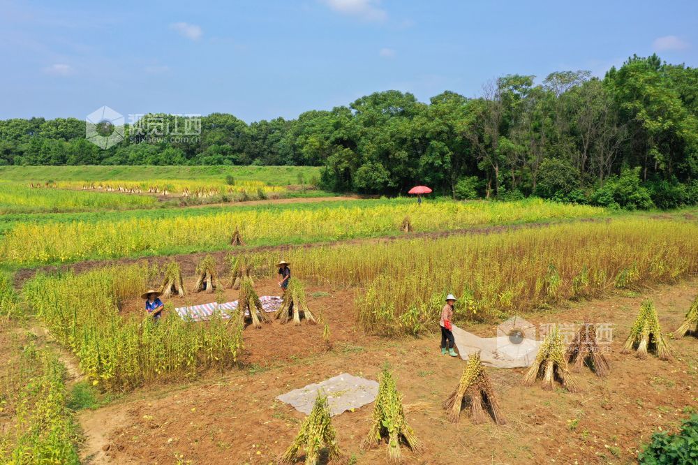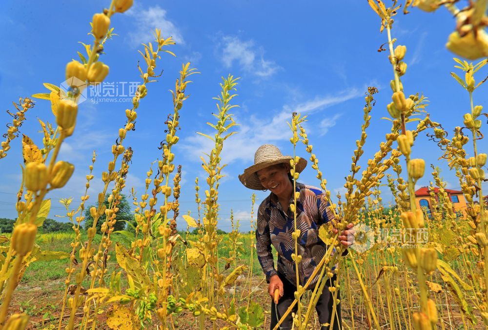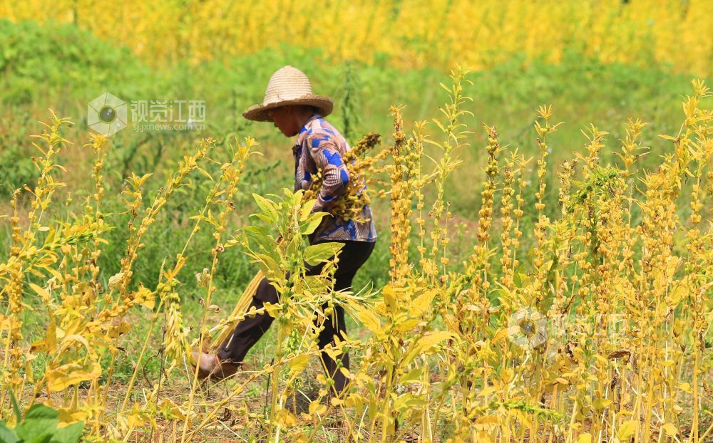 8月24日,江西省吉安市泰和县石山乡齐塘村,农民正在采收芝麻。