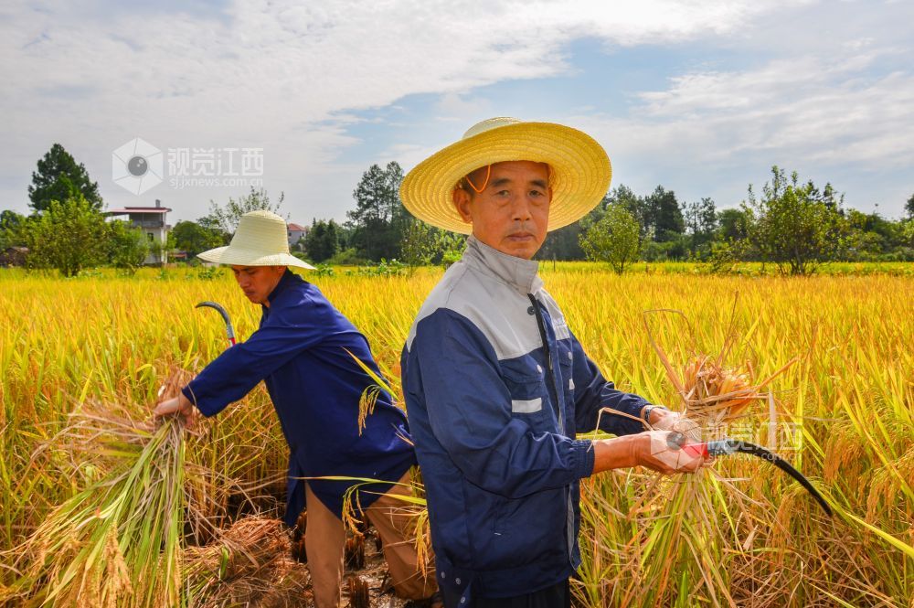 立秋过后,江西省永新县各乡镇的中稻陆续成熟,农民们抢抓农时收割稻谷,处处呈现出一派忙碌的丰收景象。