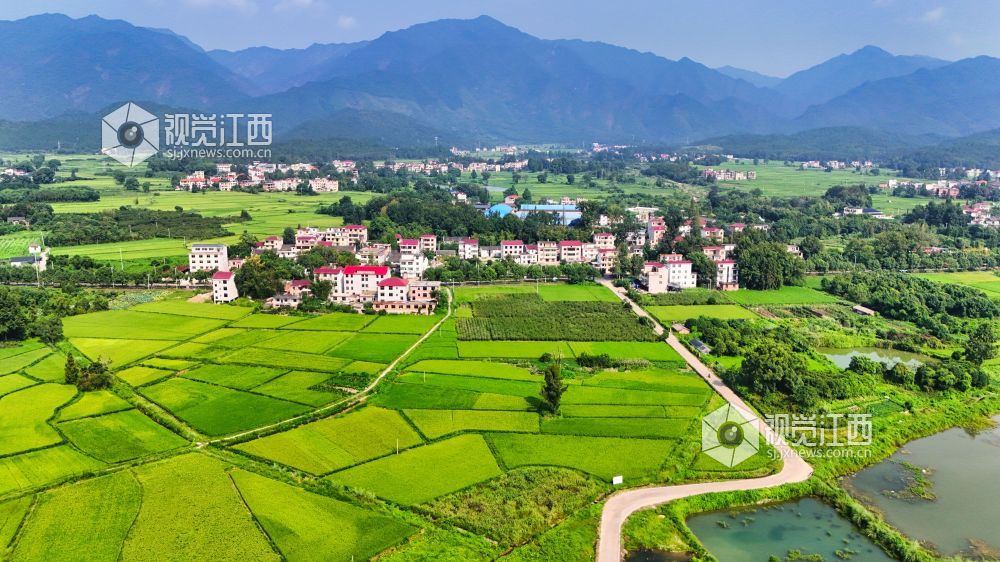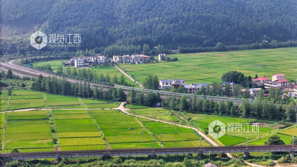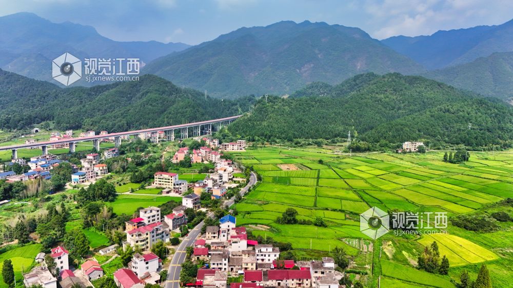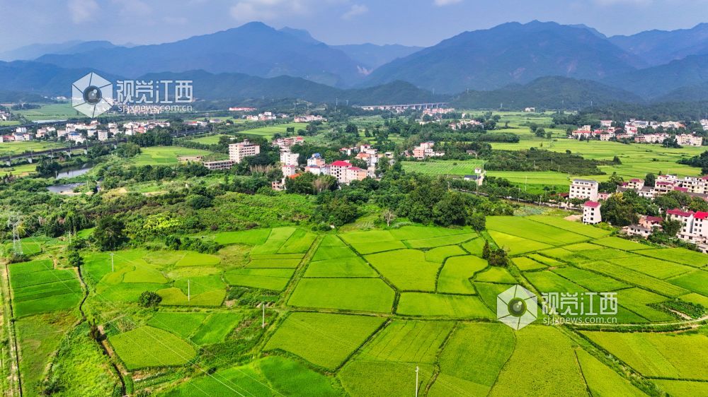 8月26日,浅秋的江西井冈山脚下,乡村田间一片生机盎然,密布的稻田长势喜人。整齐的民居和蜿蜒的高速路在田间构成一幅幅人与自然生态和谐的美丽乡村画卷。
