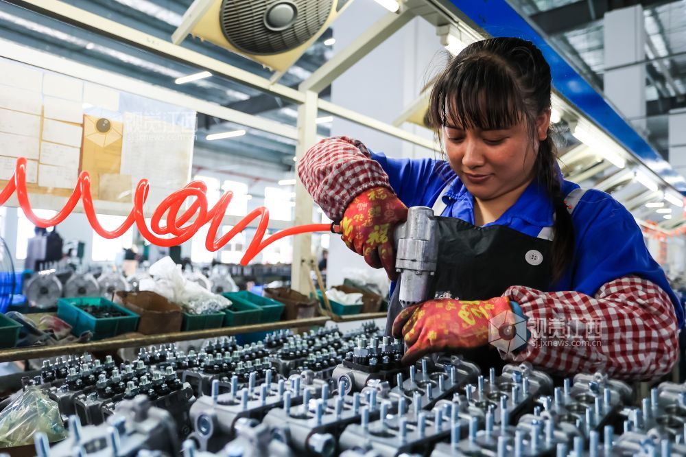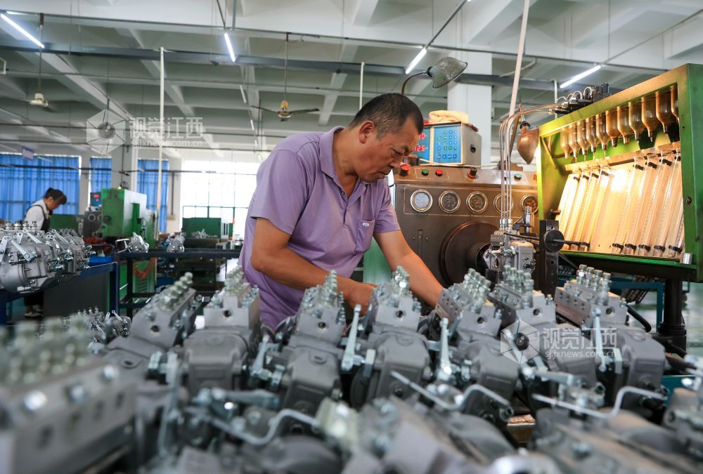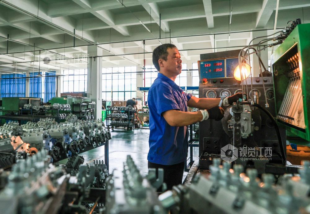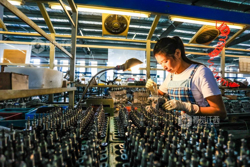 2023年8月29日,江西省瑞昌市经开区江西汇尔油泵油嘴有限公司车间内,工人们正在赶制订单。