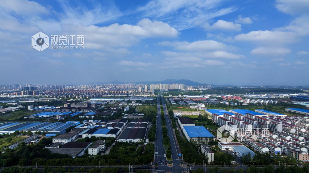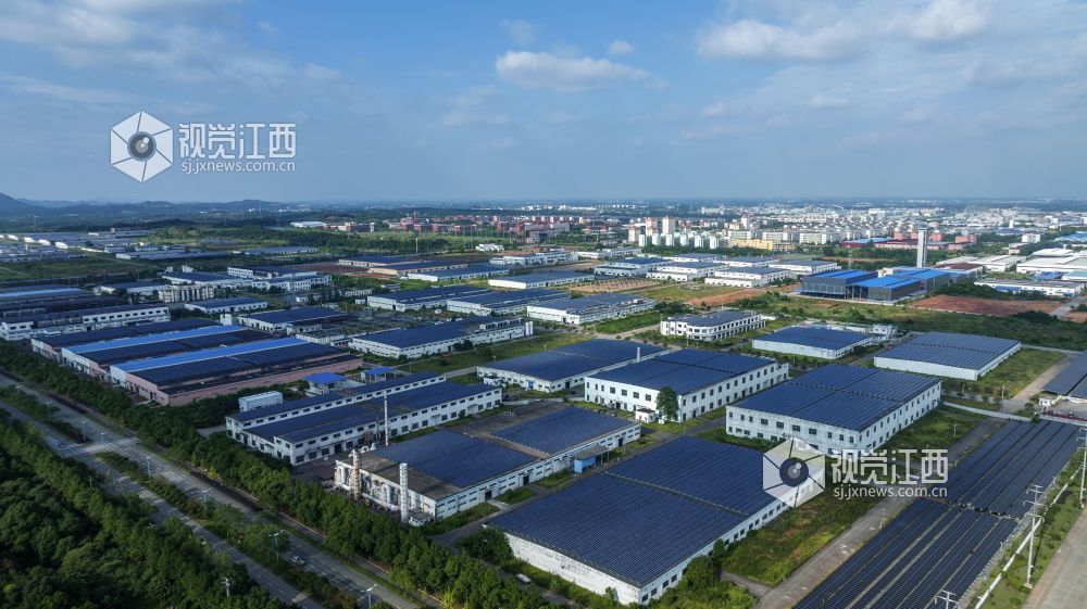 近日,航拍蓝天白云下的江西新余高新工业园区,绿意盎然,犹如一副充满生机与活力的迷人画卷。