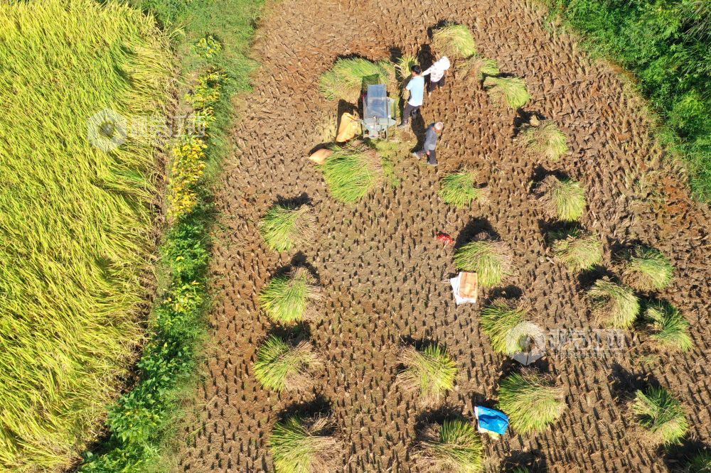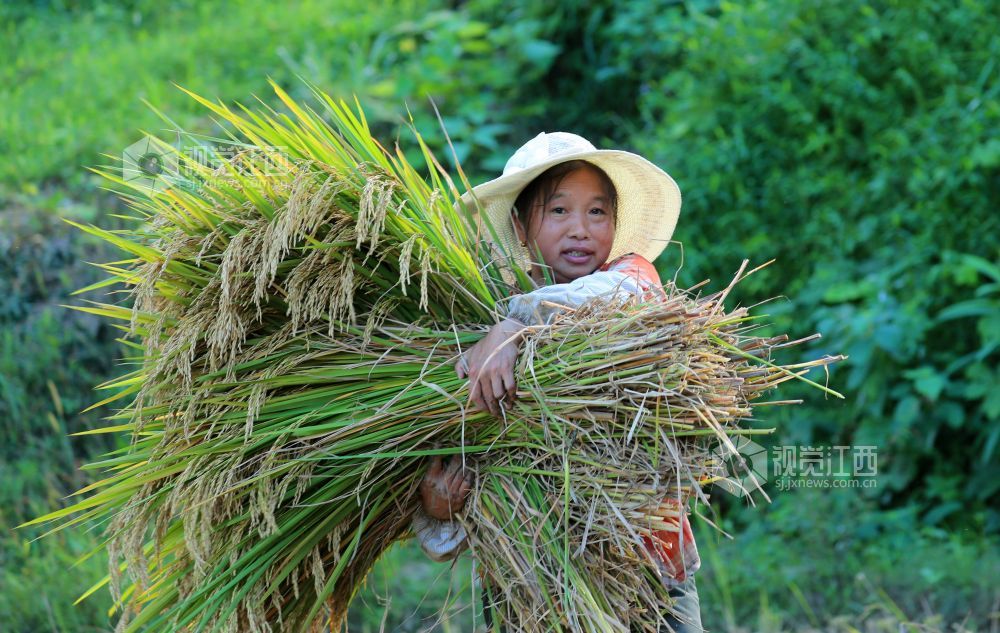 秋收时节,泰和县引导农民抢收水稻,田间地头一派秋收的繁忙景象。