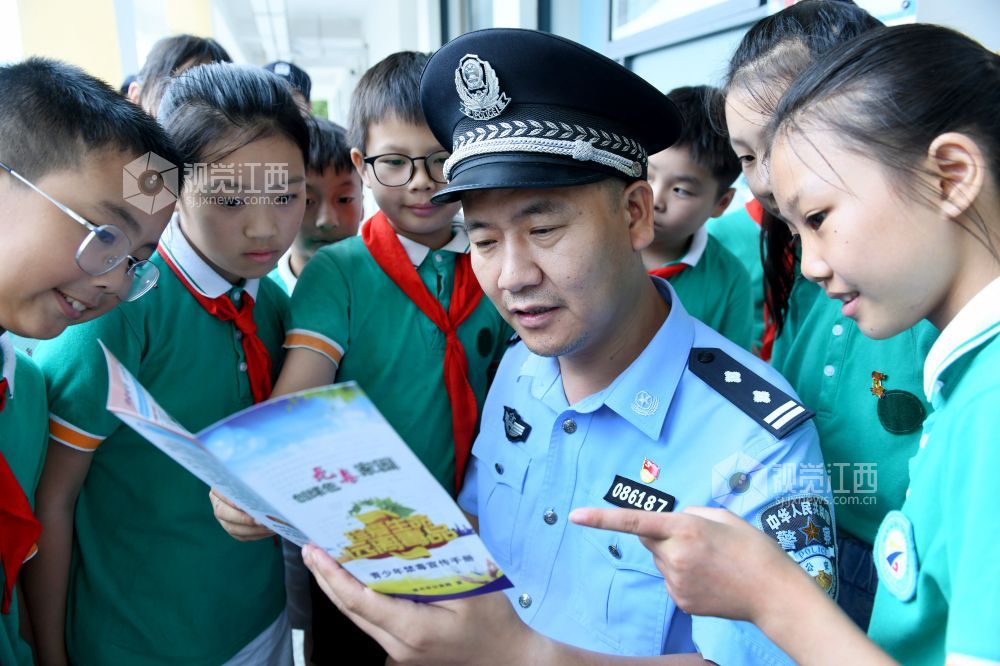 2023年9月13日,江西省德兴市公安局泗洲派出所民警正在该市潭埠中心学校,现场宣讲有关识毒禁毒知识。