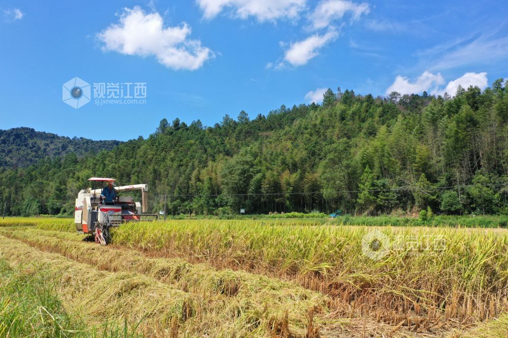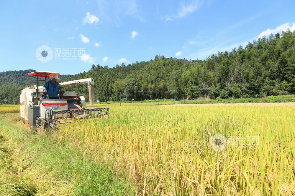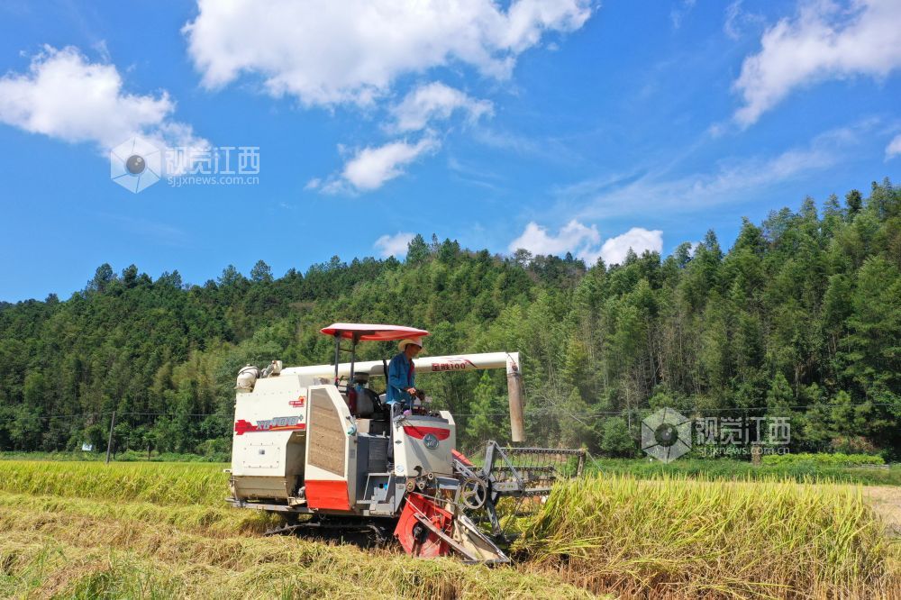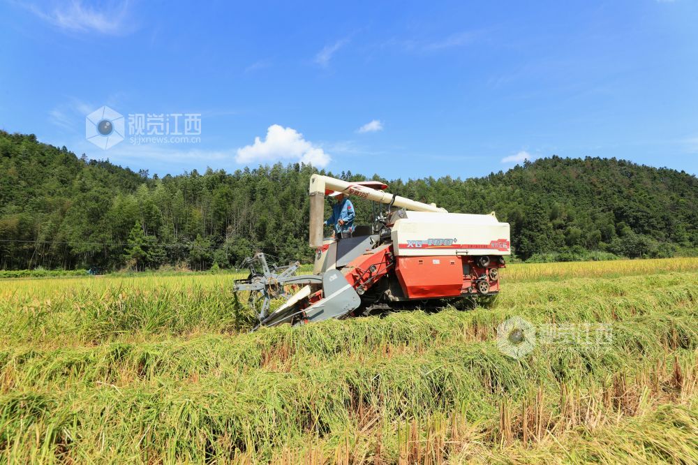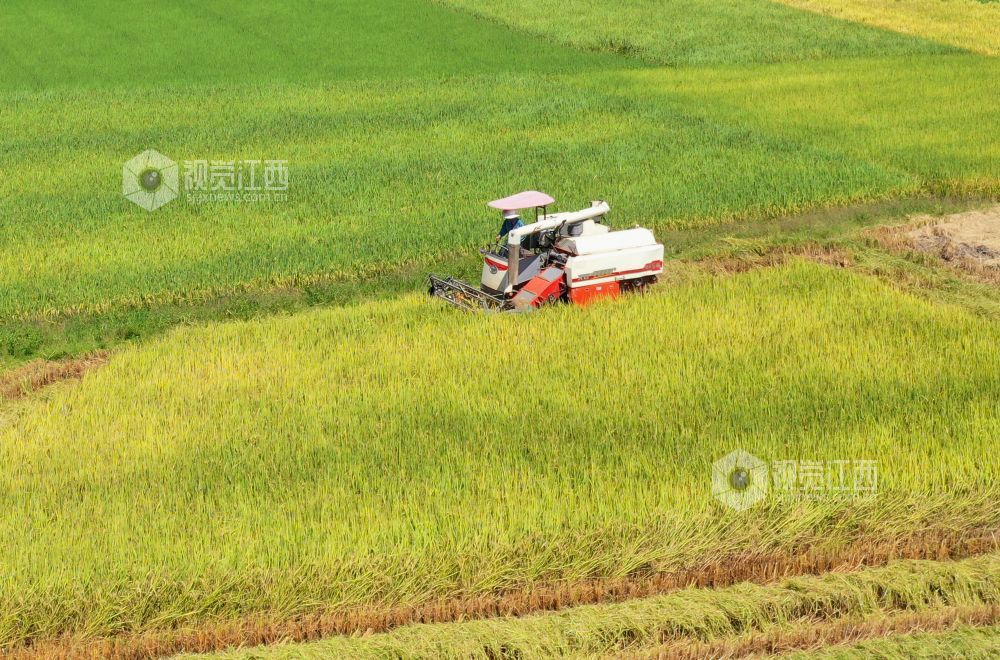 秋收时节,泰和县中稻丰收,农民抢抓农时收割,确保颗粒归仓,助力丰收增收。