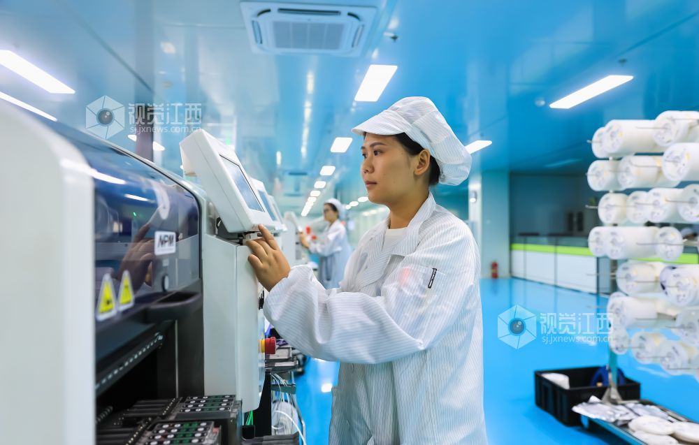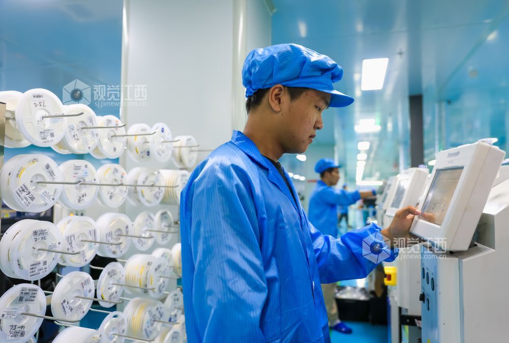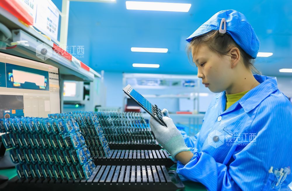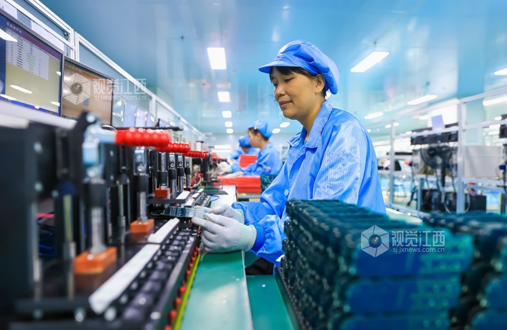 2023年9月19日,江西省瑞昌经开区智造小镇江西丰润电子有限公司生产车间内一派繁忙景象,工人们正在生产线上为新能源汽车赶制零部件。