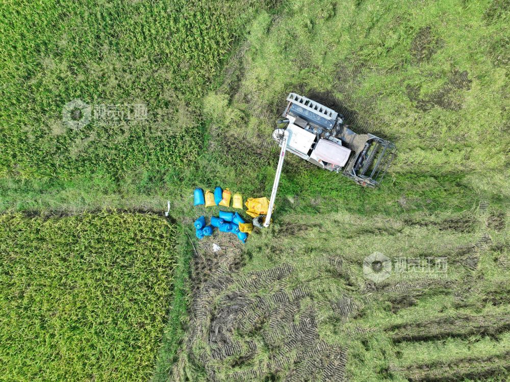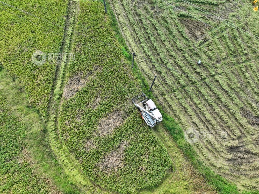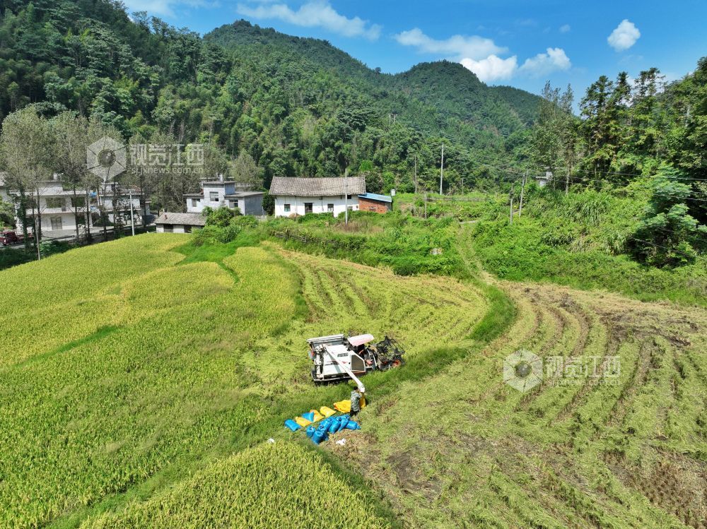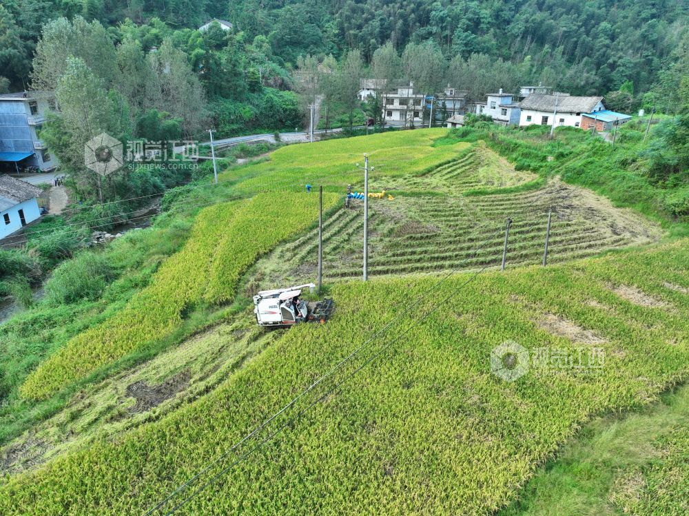 2023年9月18日,江西省萍乡市芦溪县芦溪镇水山村,村民抢抓农时收割稻谷。
