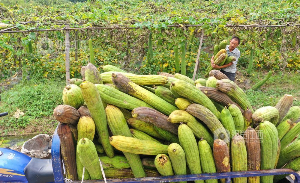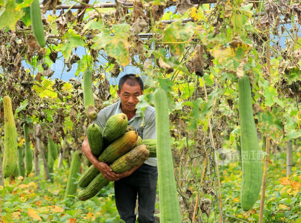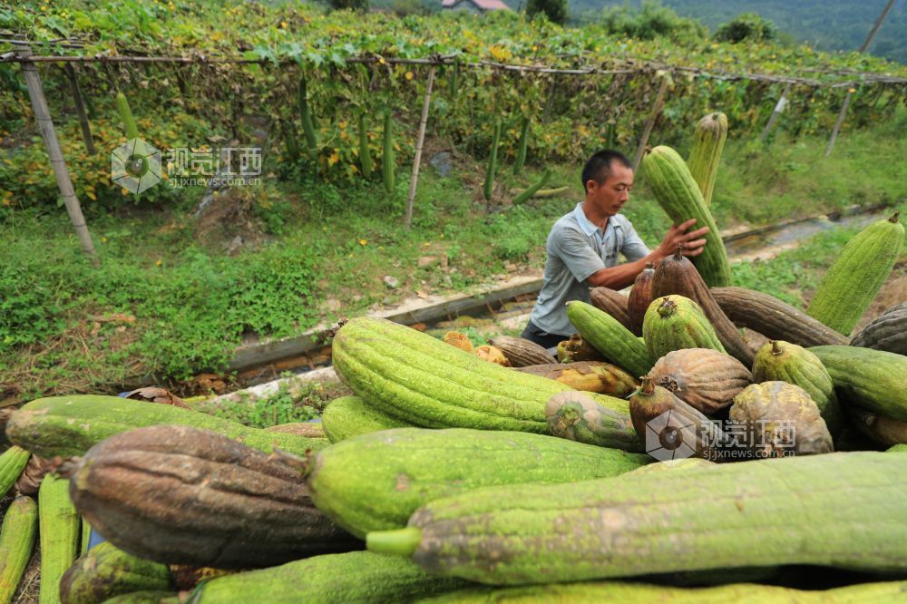 9月21日,江西省吉安市泰和县水槎乡茶芫村,农民正在采收丝瓜。