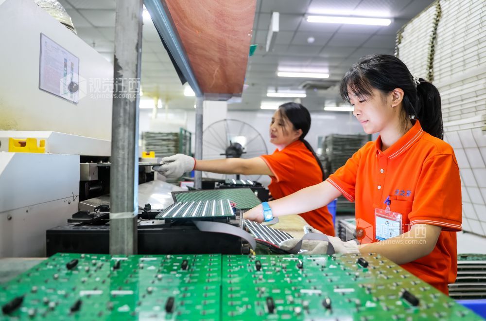 2023年9月24日,江西省瑞昌经开区科技园江西天之彩显示技术有限公司生产车间内,工人正在赶制国内外订单产品。