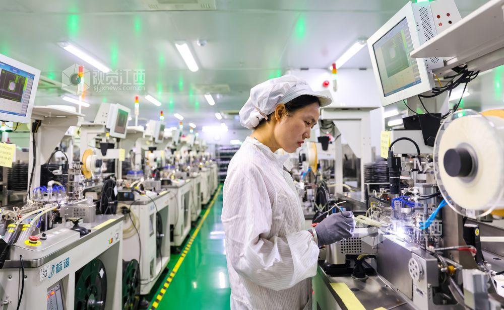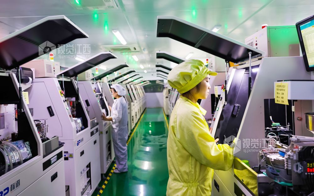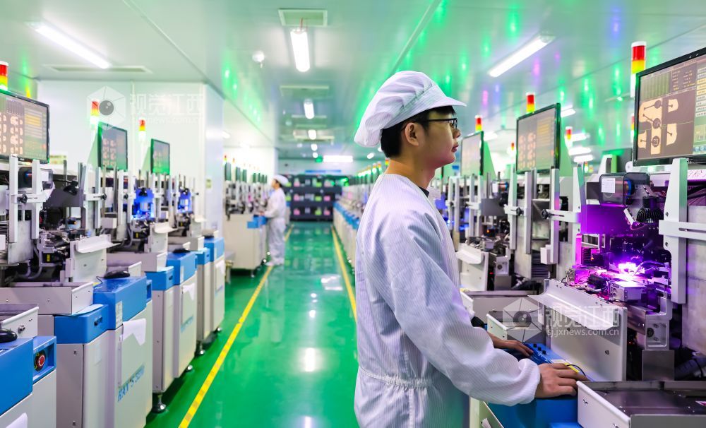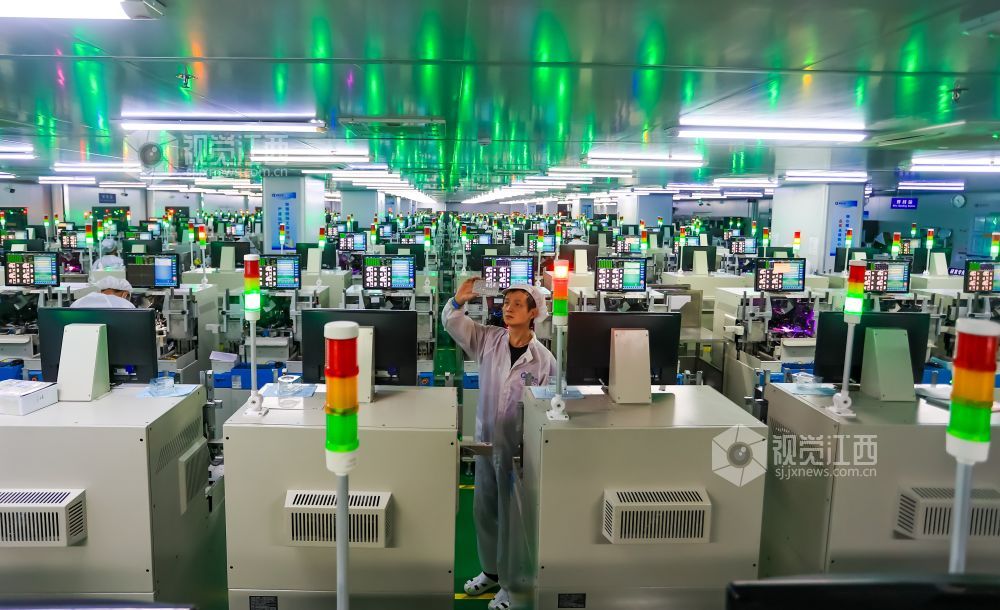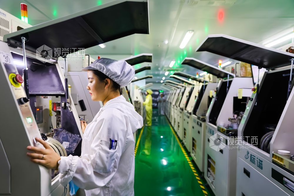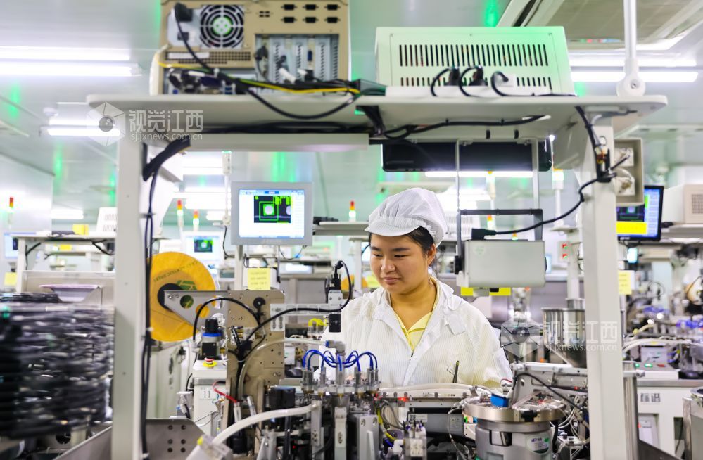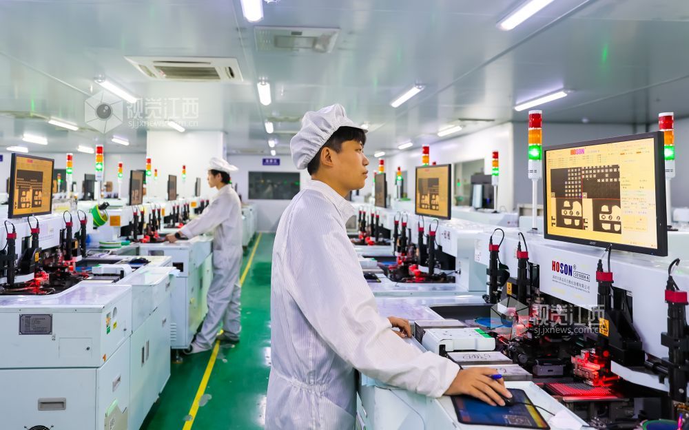 2023年9月26日,江西省瑞昌经开区科技园江西瑞晟科技有限公司生产车间内,工人们正在智能生产线上赶制订单。