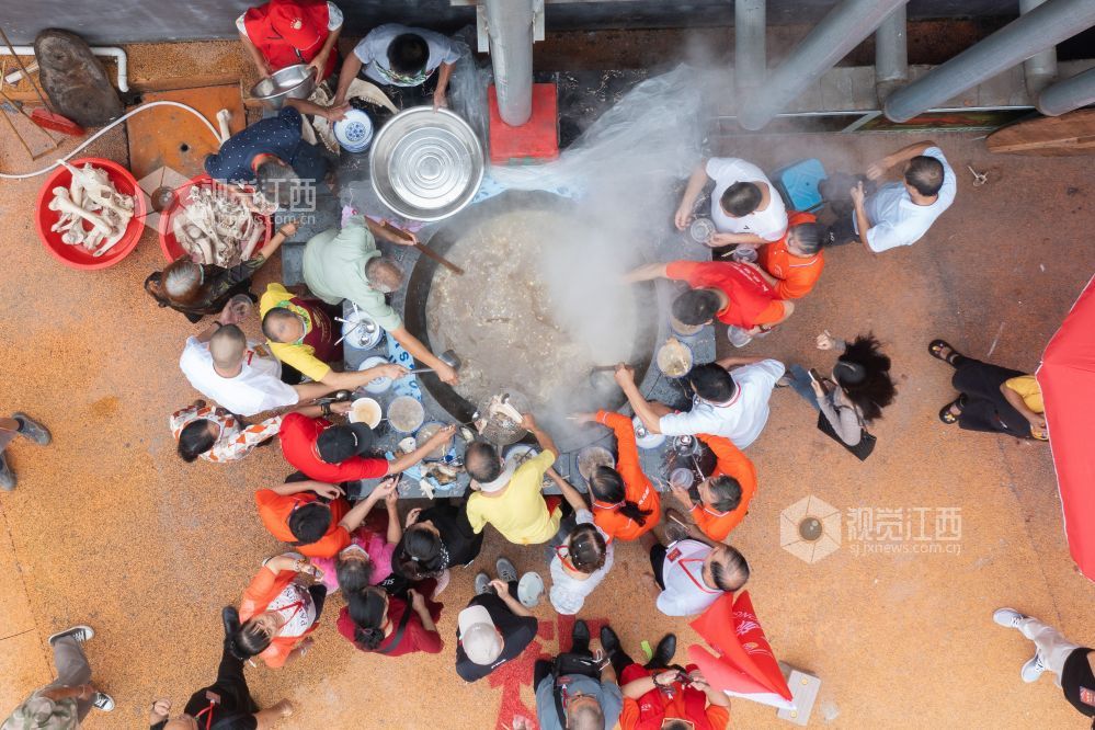 9月23日,在江西省泰和县苑前镇黄坊村举行了一场“万人游古村,千人品牛宴”活动,近千名游客参与了这场美食盛宴。