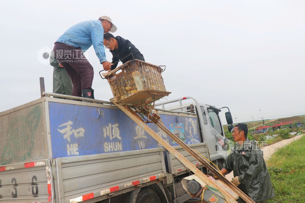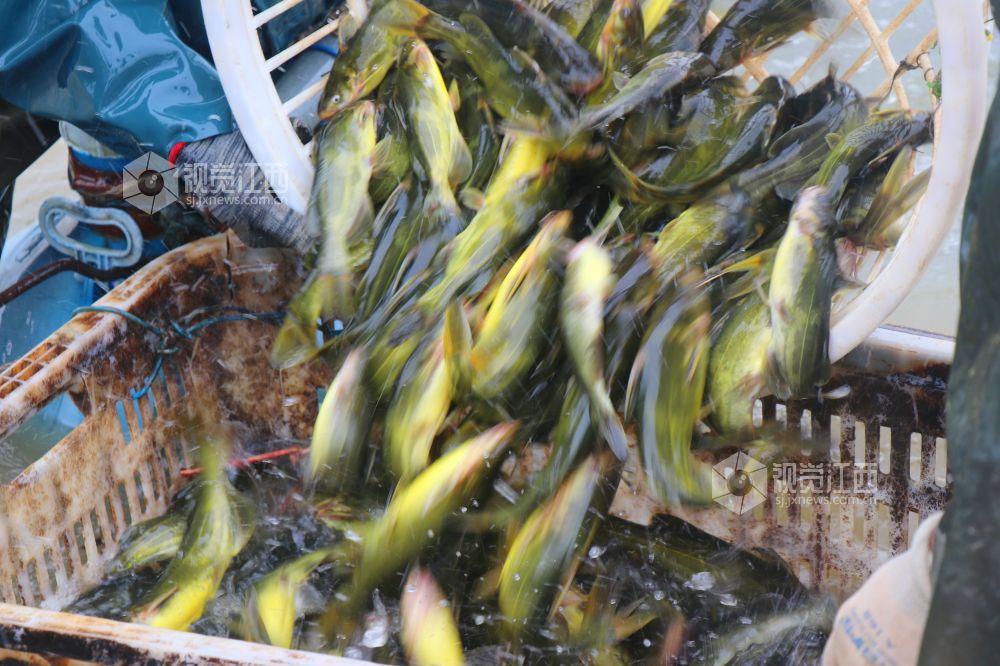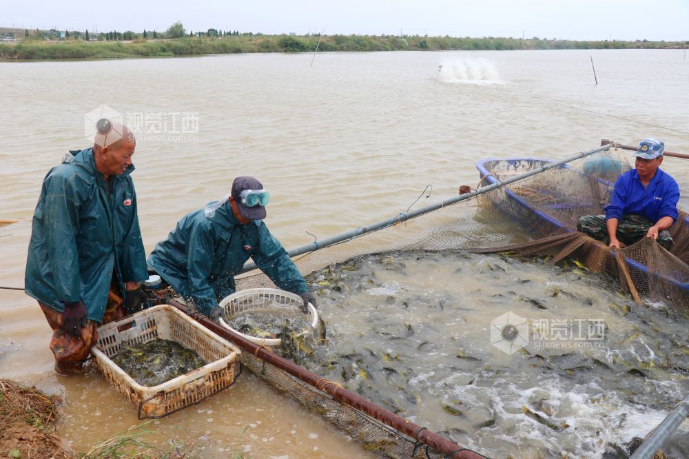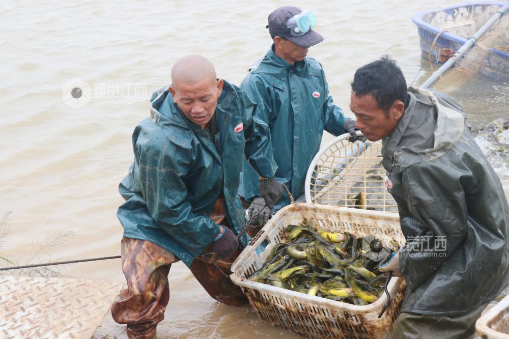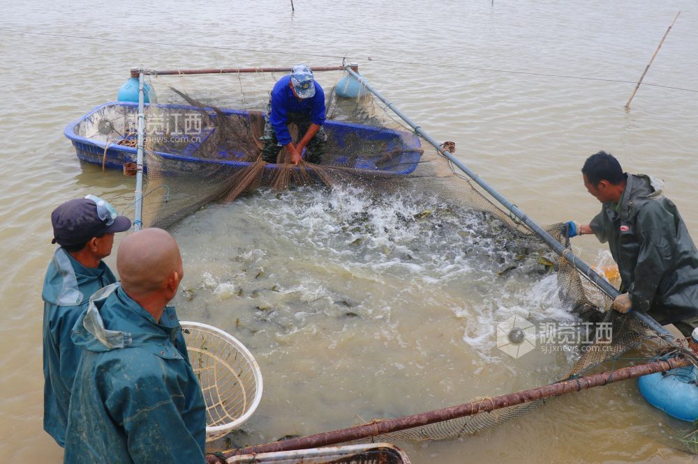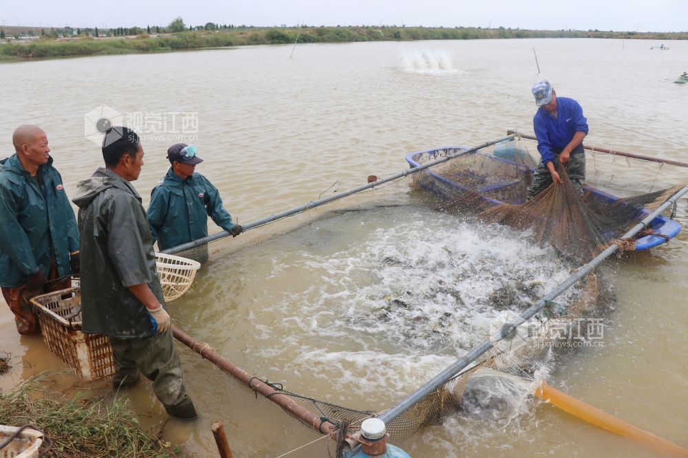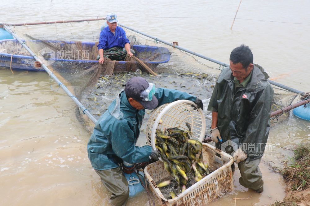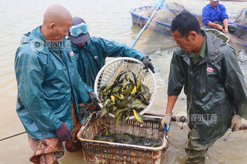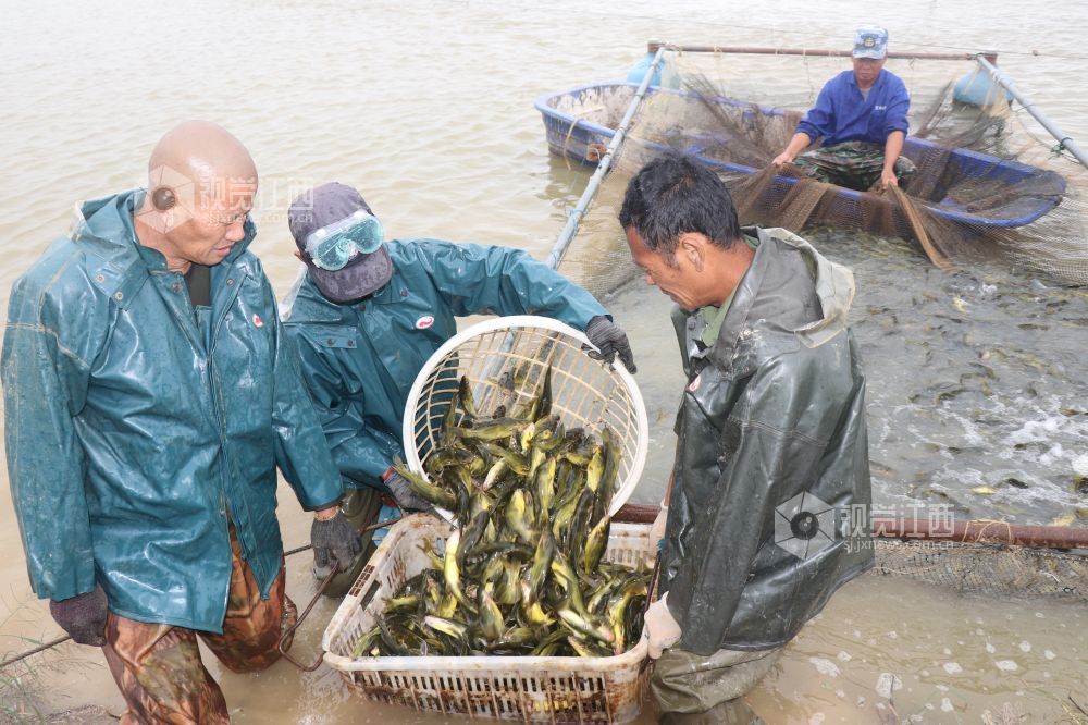 10月6日,在江西省余干县康山垦殖场维丁水产养殖基地,农户正在捕捞黄丫头供应市场。