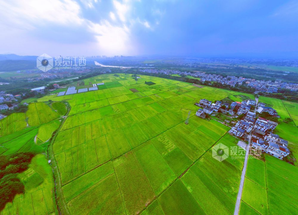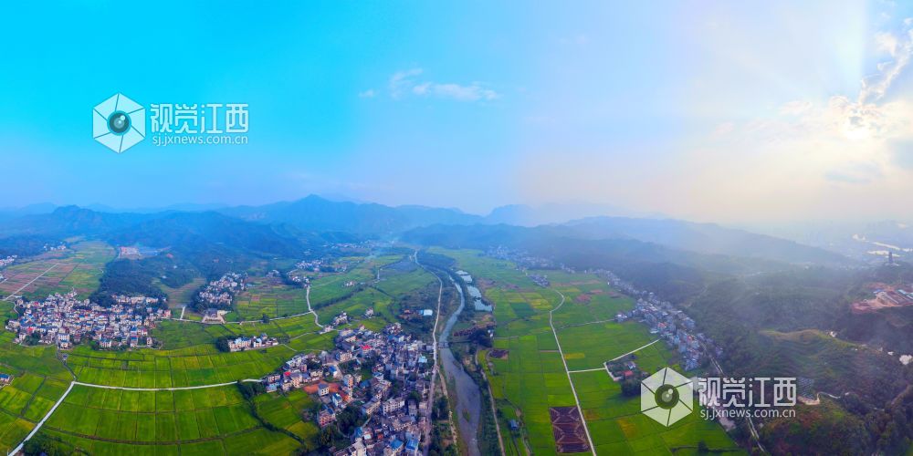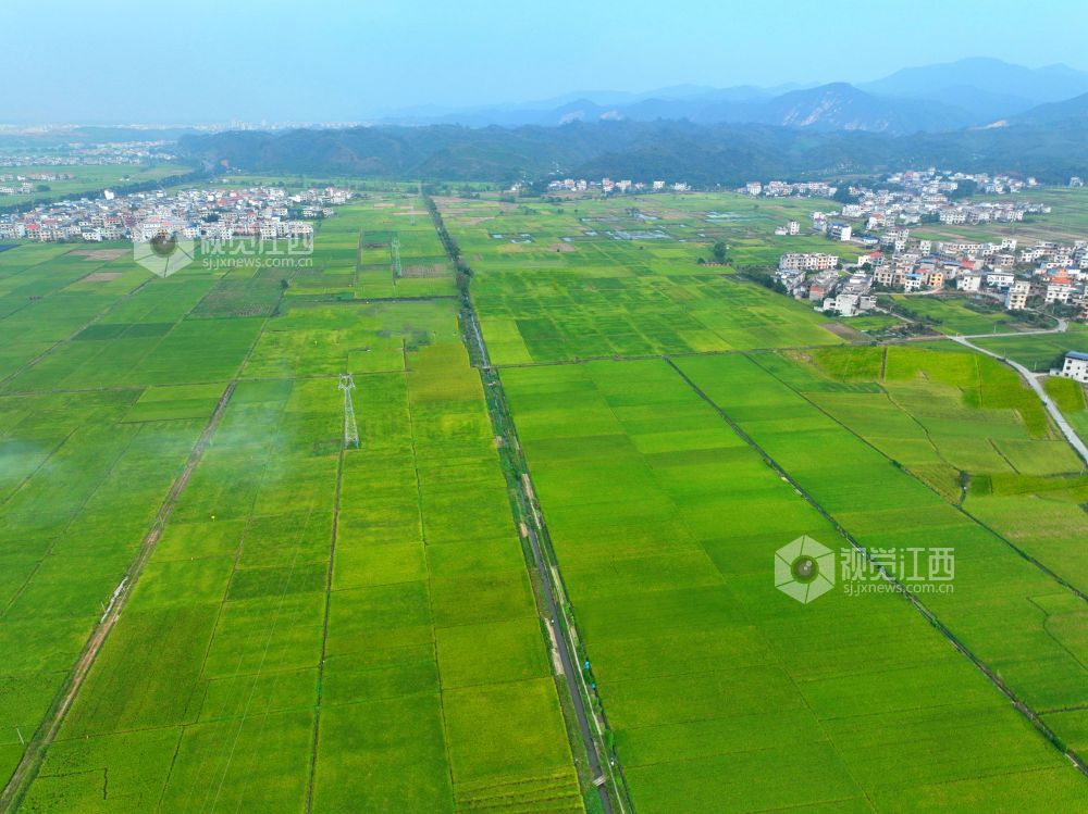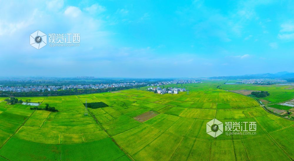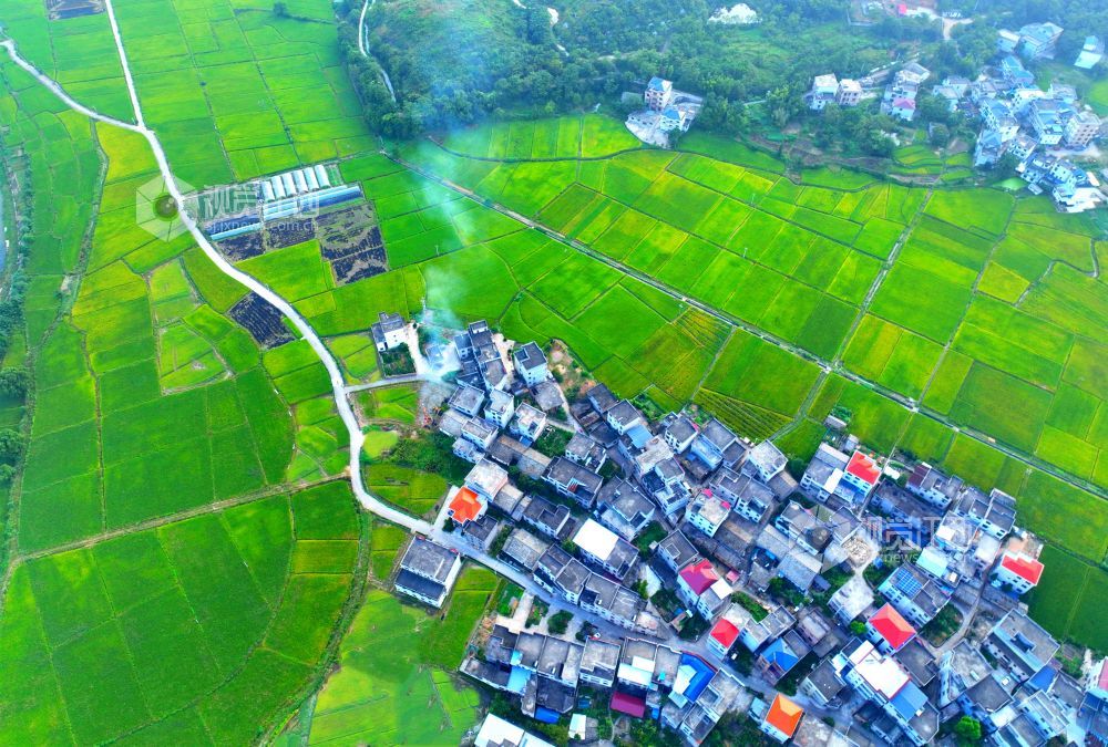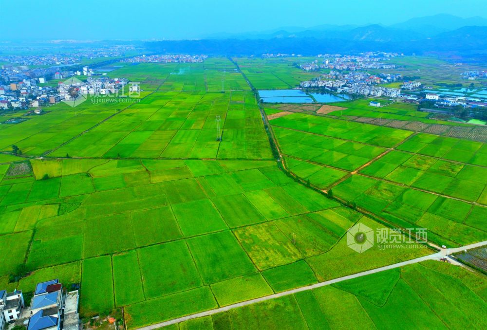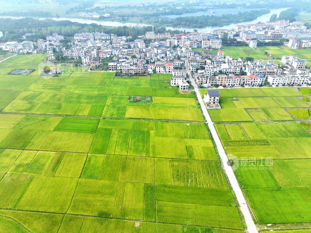 2023年10月7日,在江西省遂川县枚江镇从空中俯瞰,阡陌纵横,田畴似锦,黄绿相间的田野与村庄交相辉映,构成一幅醉人的乡村田园画卷,谱写着秋天的绚丽色彩。