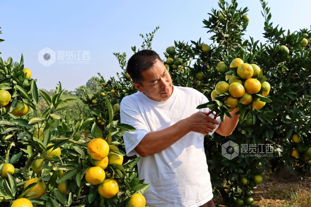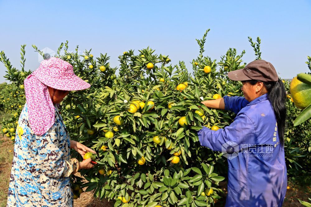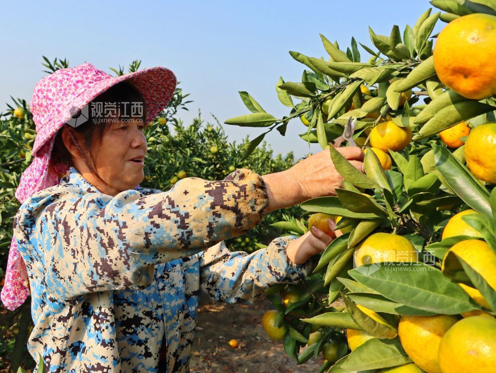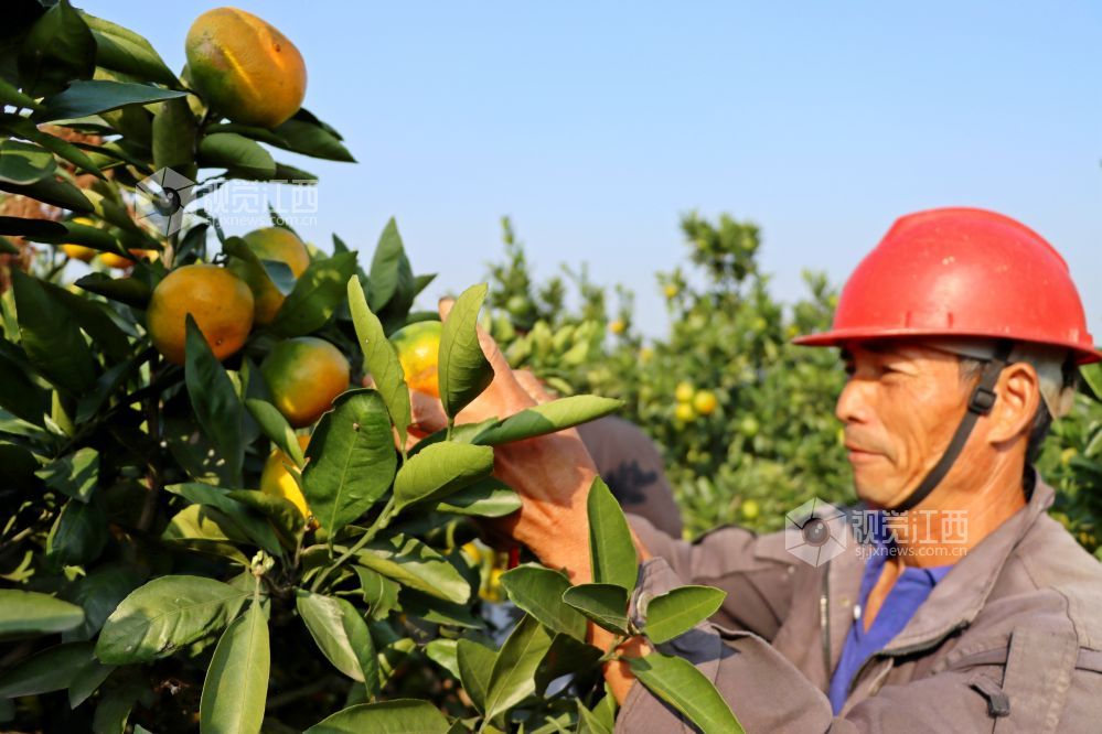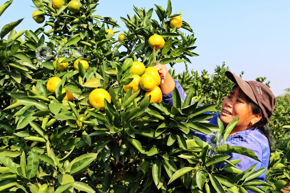 眼下正是柑橘飘香时节,2023年10月11日,在江西省赣江新区新祺周管理处桑海集团江夏分场柑橘种植大户的橘园里,黄灿灿的柑橘挂满了枝头,橘农们抓住晴好天气,忙碌采摘成熟的柑橘,供应市场。