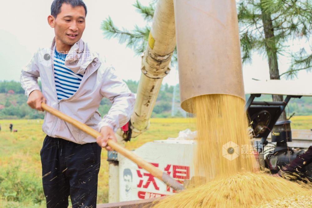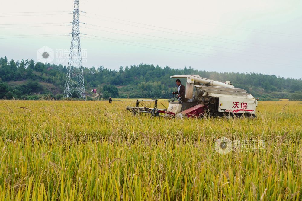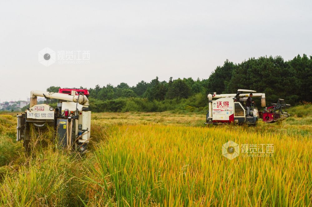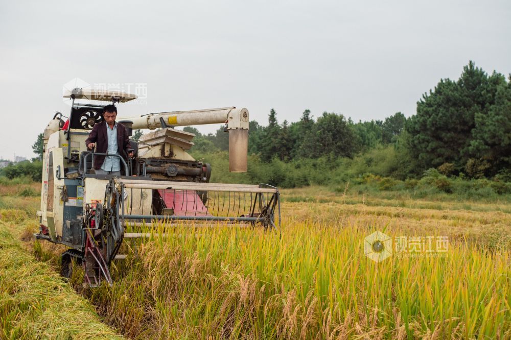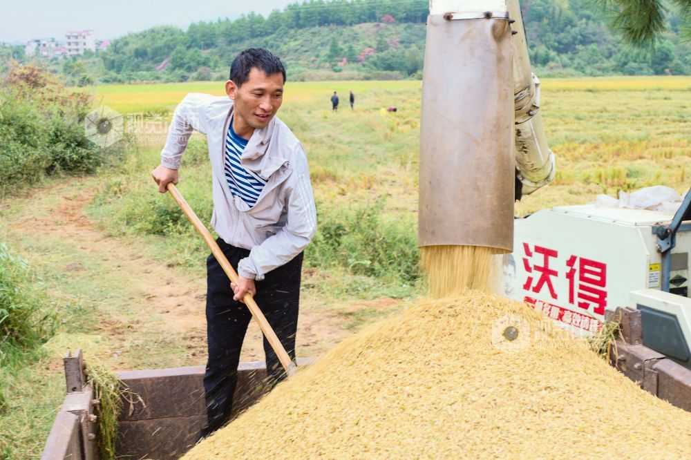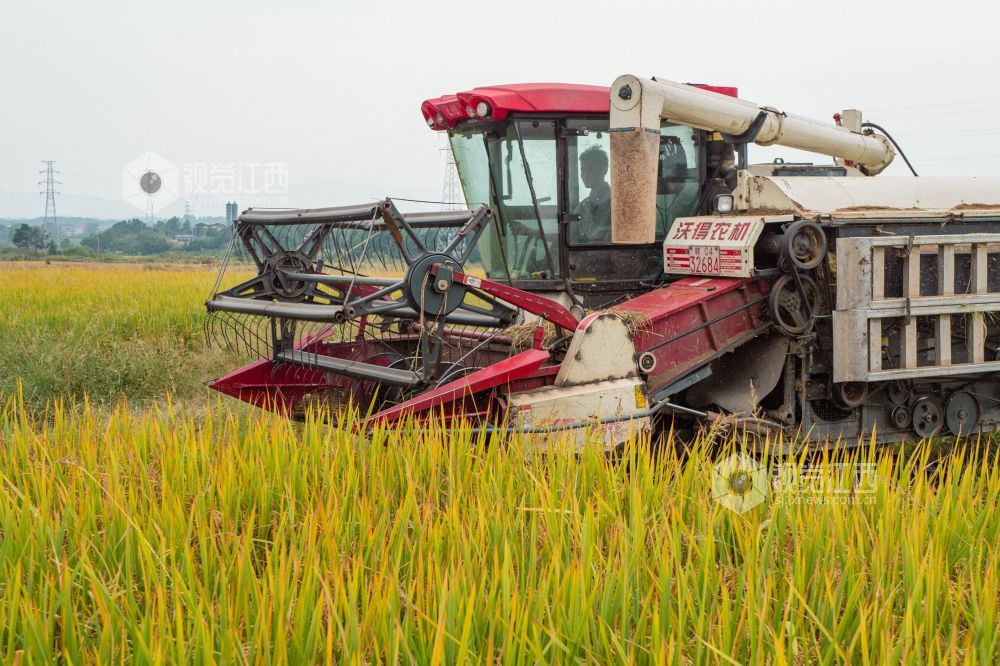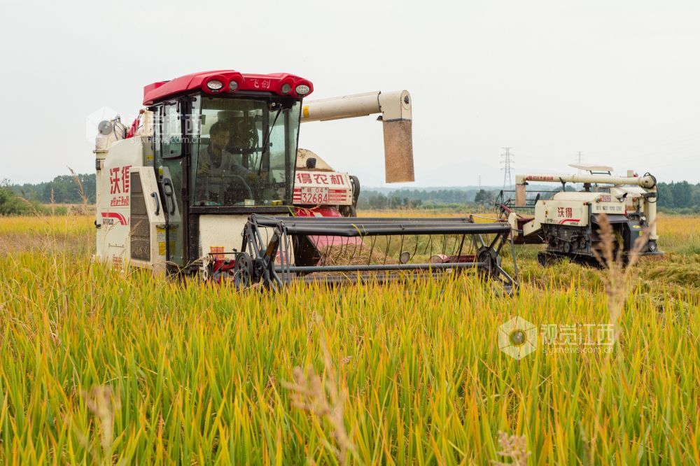 金秋时节,江西省永丰县恩江镇岭上村350余亩晚稻进入收获期。