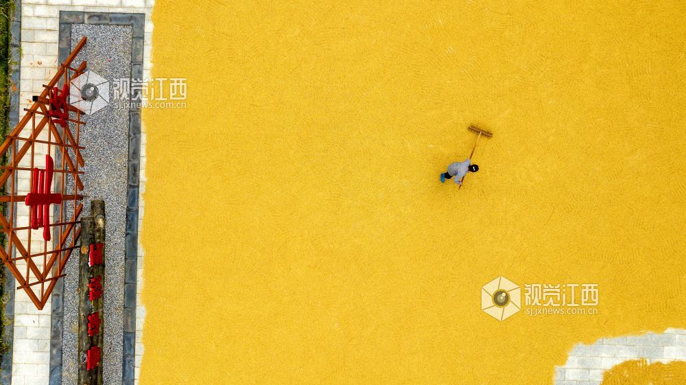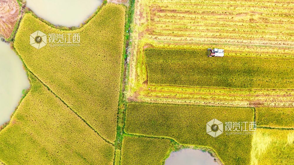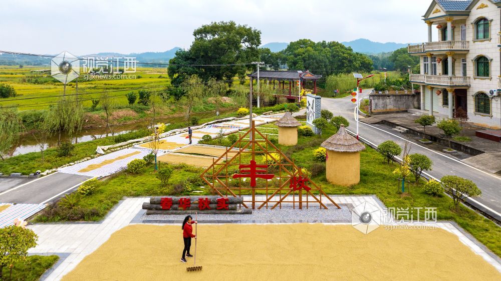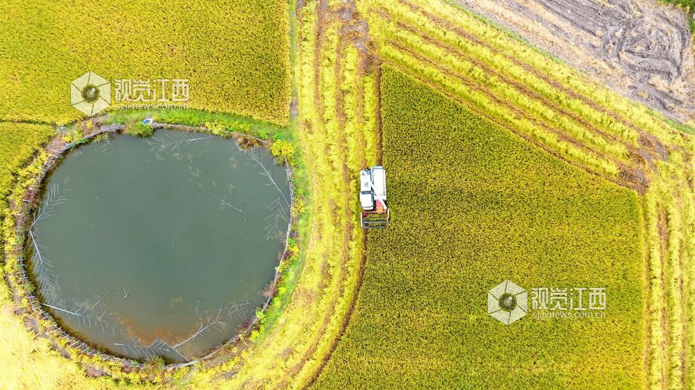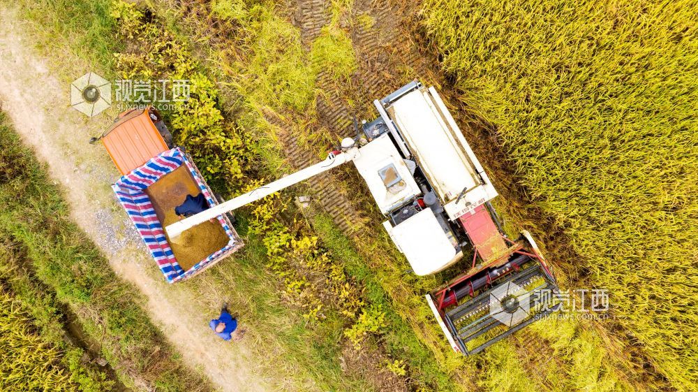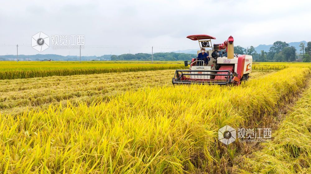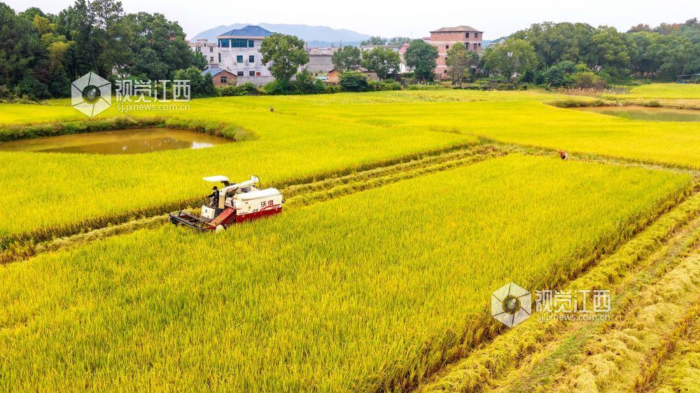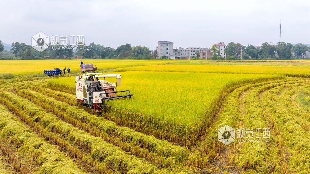 江西省吉安市吉水县晚稻陆续成熟,迎来丰收季,各地粮农抢抓晴好天气收割、晾晒、入库,确保颗粒归仓。