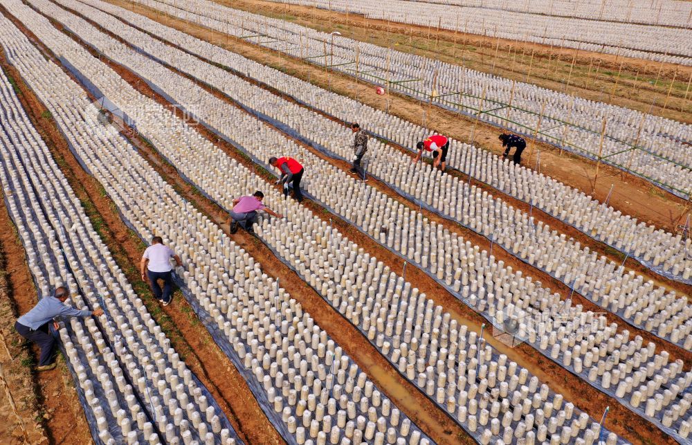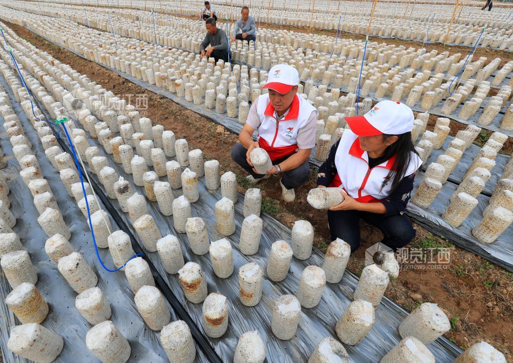 10月13日,江西省吉安市泰和县万合镇黑木耳种植基地,农民正在整理菌棒。近年来,泰和县以党建为引领,积极利用党建产业扶持资金,以“党支部+合作社(种植基地)+农户“的模式,大力发展农业特色产业,壮大村级集体经济,带动农民就业,助力乡村振兴。