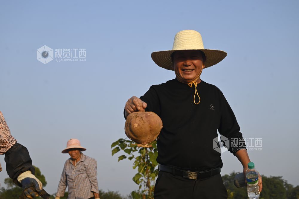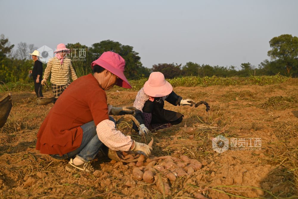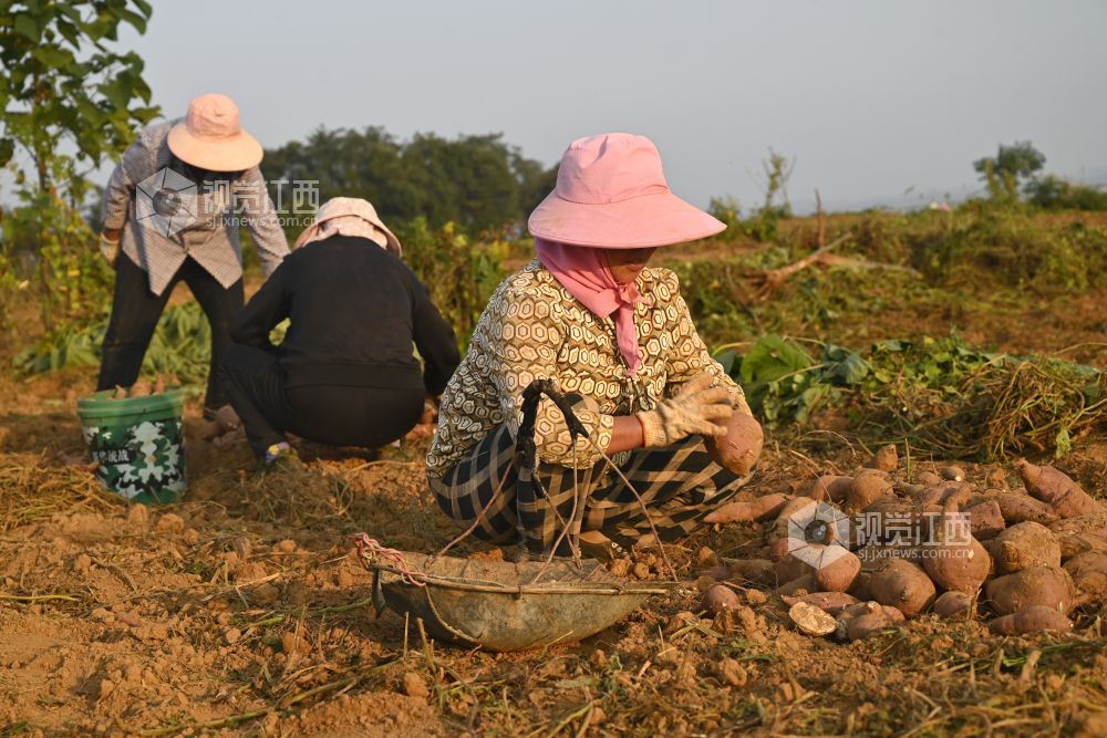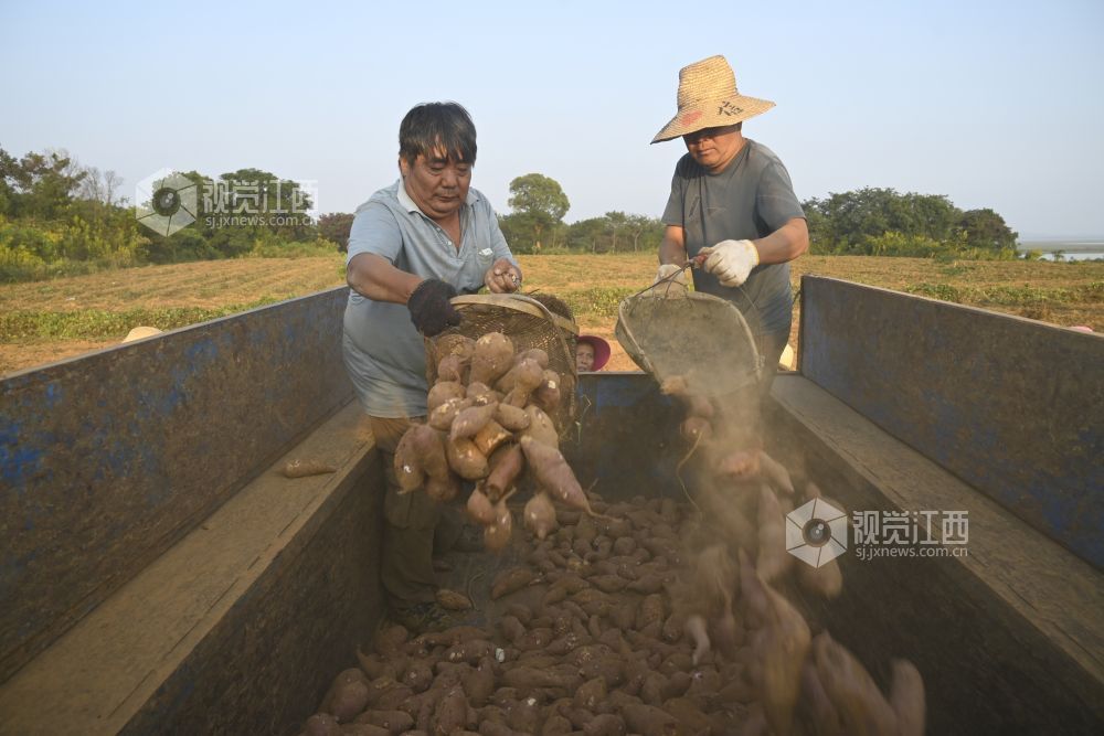 鄱阳县银宝湖乡鸣山村集体经济所种植的红薯2023年大获丰收。