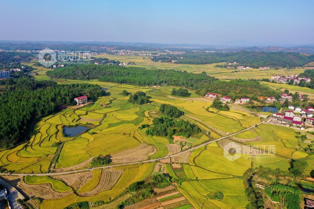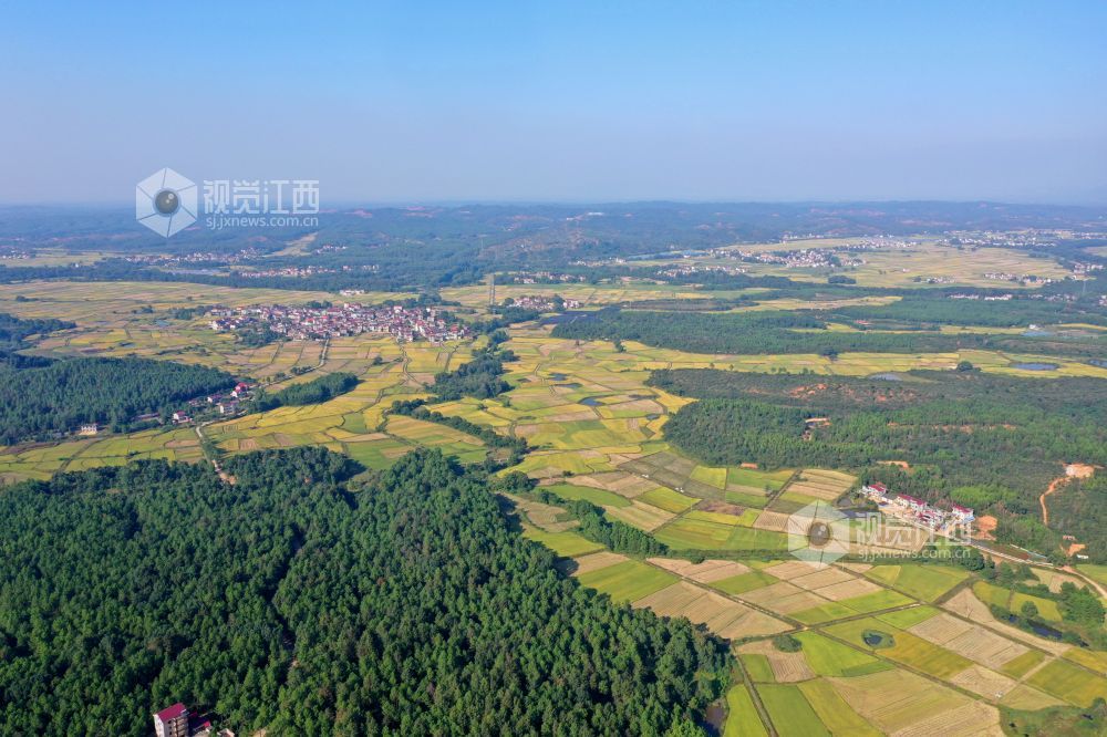 10月16日,江西省吉安市泰和县上模乡水稻粮食主产区,金秋时节,晚稻迎来收获季,金色田园“丰”景如画。