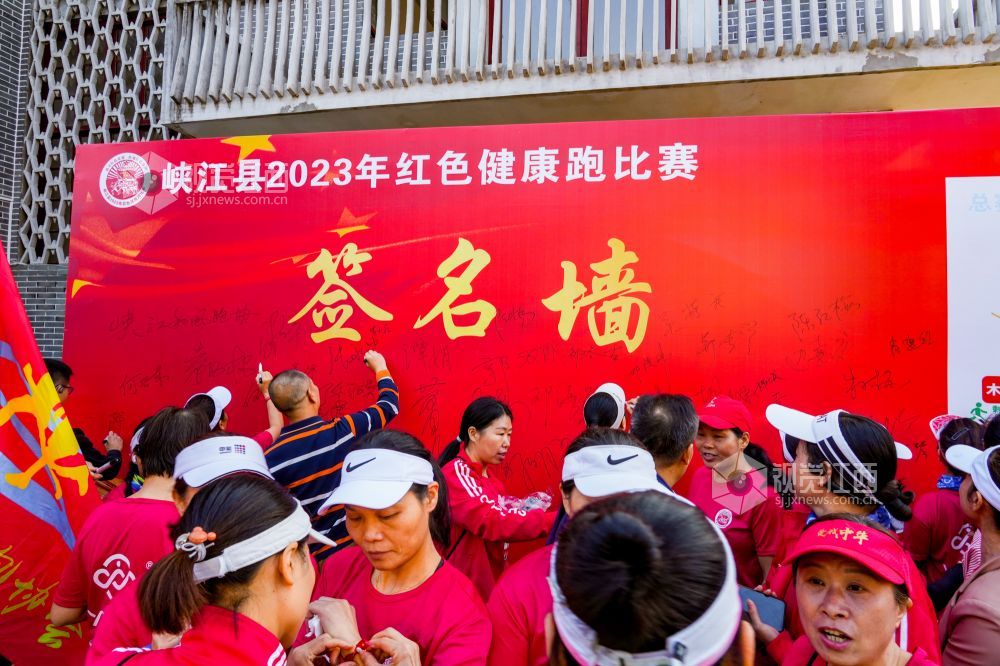 10月17日上午,江西省峡江县在巴邱镇举办首届“追寻红色足迹 传承红色基因”为主题的红色健康跑,吸引了该县各单位干部职工共1000余人参加,全程有10公里路程。